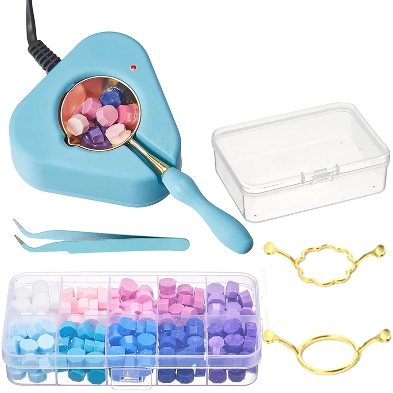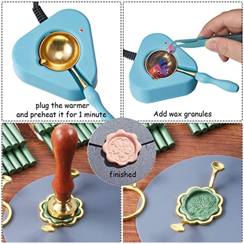 Amplia aplicación: el kit de calentador de sellado de cera presenta una amplia gama de usos, se puede aplicar para sellar tarjetas, sobres, invitaciones, envoltorios de regalos, envases de vino, álbumes de recortes, regalos artesanales, etc. Expresando tu amor