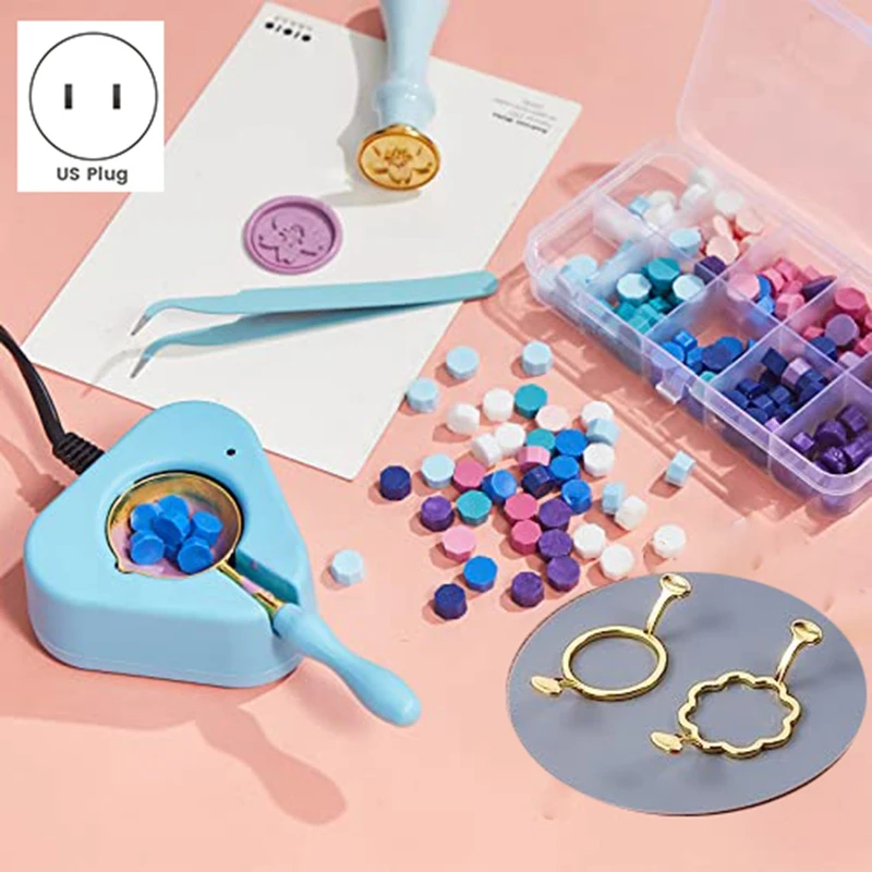 Comprar Kit de sello de cera de fusión con cuchara de sellado de cera y pinzas, con 2 moldes de sello de cera, enchufe estadounidense