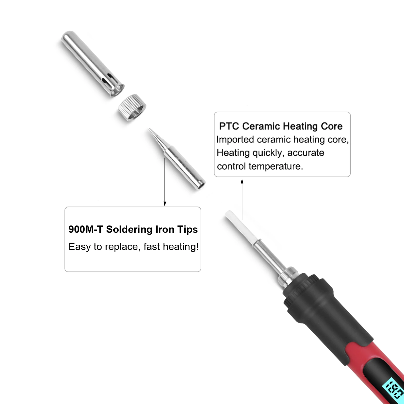 NEWACALOX 180-500°C/356-932℉ Kit de soldador con ajuste de temperatura LCD, Mini pistola de soldar de 60W con puntas de soldador, alambre de soldadura
