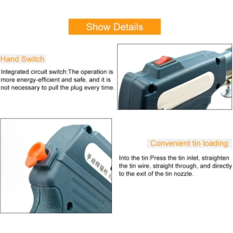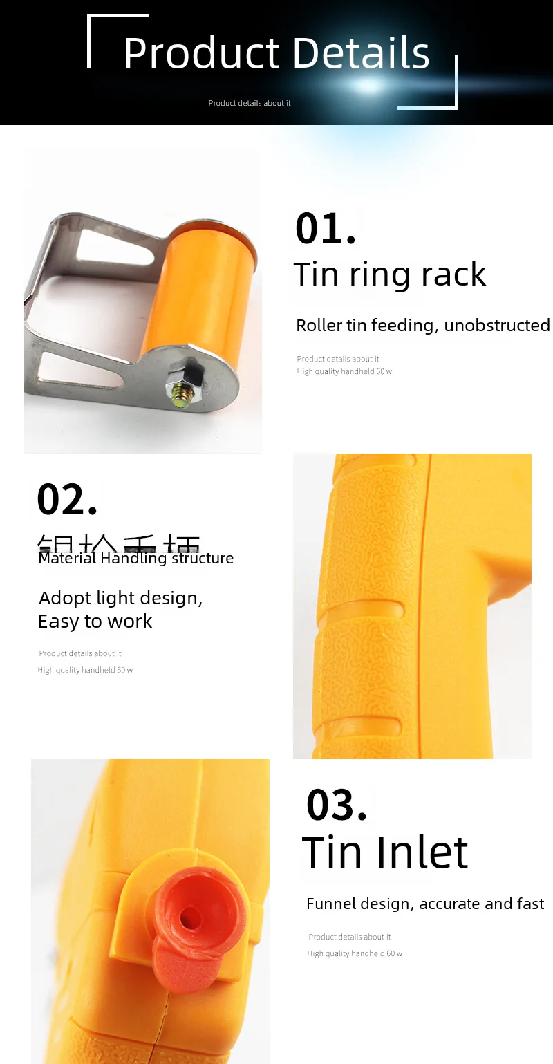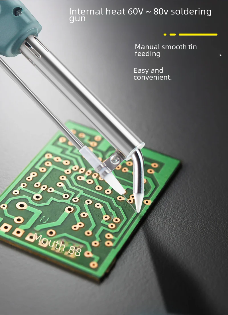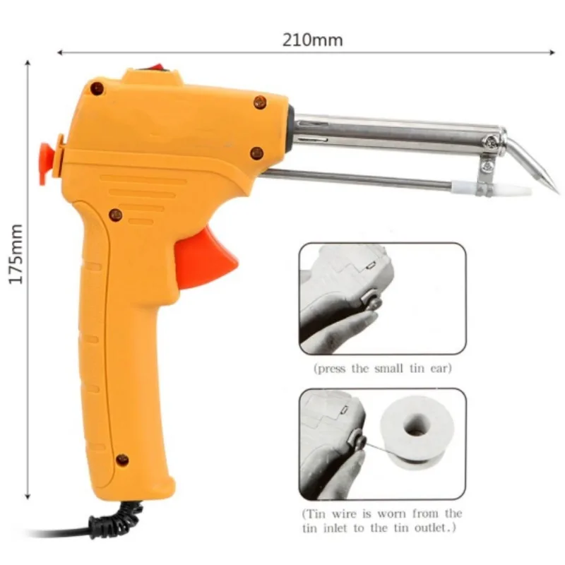 Potencia: 60 W.Cantidad: 1 unidad.Material: ABS, acero inoxidable.Color: VERDE OSCURO, AMARILLO. (opcional)El paquete incluye1 x pistola de soldadura.