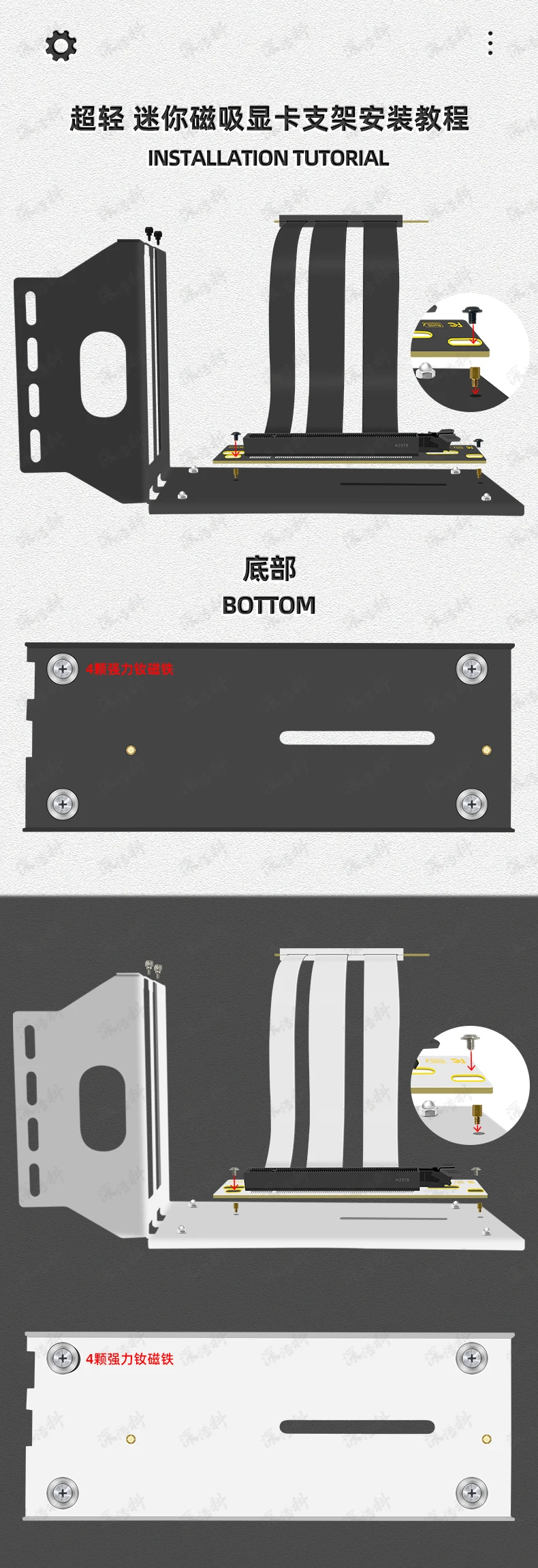 Soporte con peso de la Caja: 233GComprar Kit de soporte Vertical Universal para GPU PCI Express 4,0 X16 Gen4, Cable elevador blindado de 90 grados, extensor para juegos de PC, color blanco y negro