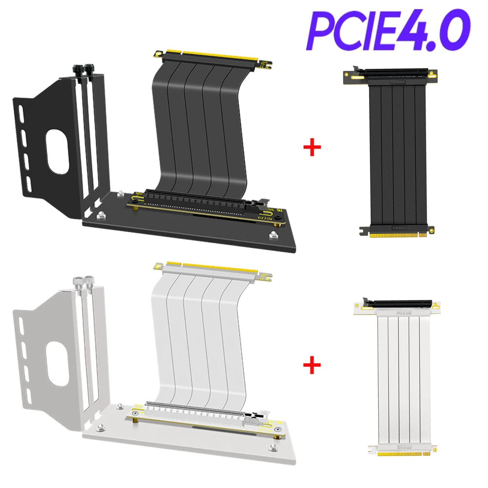 Soporte de Kit de GPU Vertical Universal en blanco y negro PCI Express 4,0 X16 Gen4 Cable elevador blindado Soporte de 90 grados Extensor DE JUEGOS DE PC