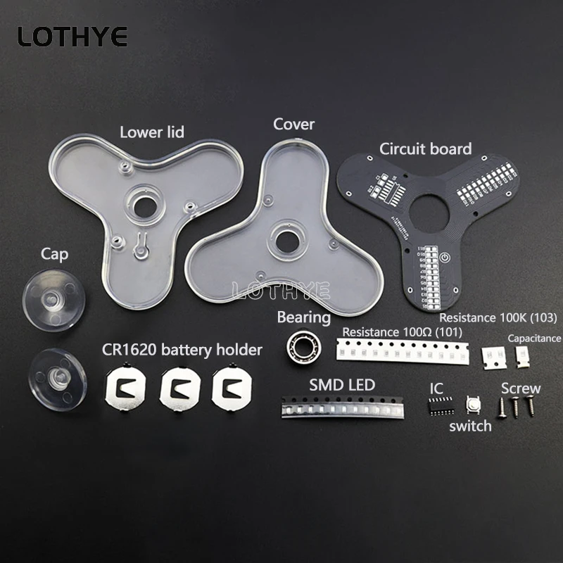 Comprar Kit superior de bricolaje con LED giratorio colorido, fabricación de Proyecto de soldadura de 3 hojas, práctica de montaje de soldadura, Kit electrónico DIY