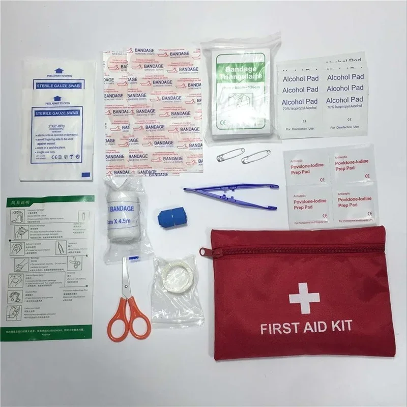 Kit de supervivencia de emergencia, bolsa de almacenamiento de viaje para el hogar en coche, vendaje para acampar al aire libre, suministros médicos para el cuidado de heridasDescripción de la configuración: