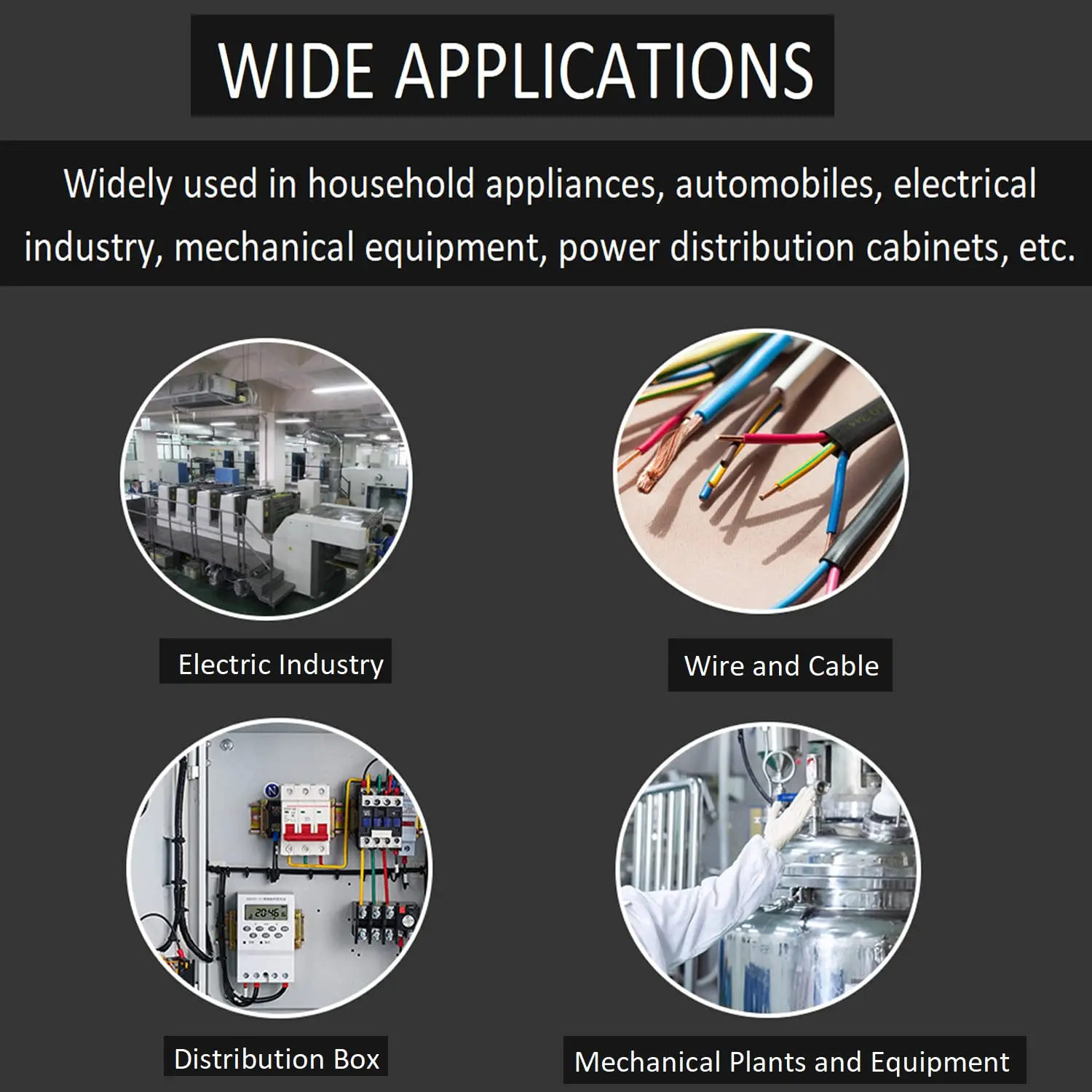 【Terminales multiusos】 - El diseño de las casquillos de alambre proporciona una forma comprobada de realizar conexiones confiables, especialmente para aplicaciones en espacios limitados.Ampliamente utilizado en electrodomésticos, automóviles, industria eléctrica, equipos mecánicos, gabinetes de distribución de energía, etc.