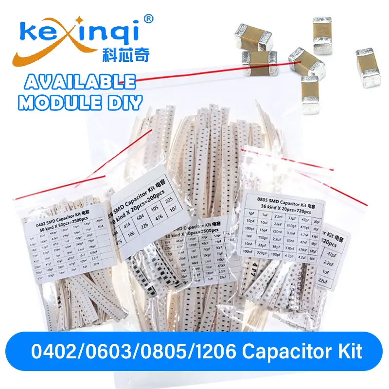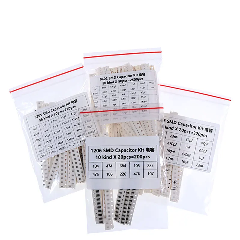 Comprar Kit surtido de condensadores SMD de 200-2500 piezas, 0402, 0603, 0805, 1206, paquete de muestras de componentes electrónicos, 16/25/31/36 valores, 1PF-10UF