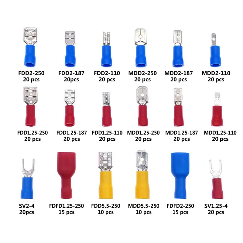 Comprar Kit surtido de conectores de terminales tipo U, horquilla completamente aislada, anillo de pala de engarce eléctrico, 330 Uds.