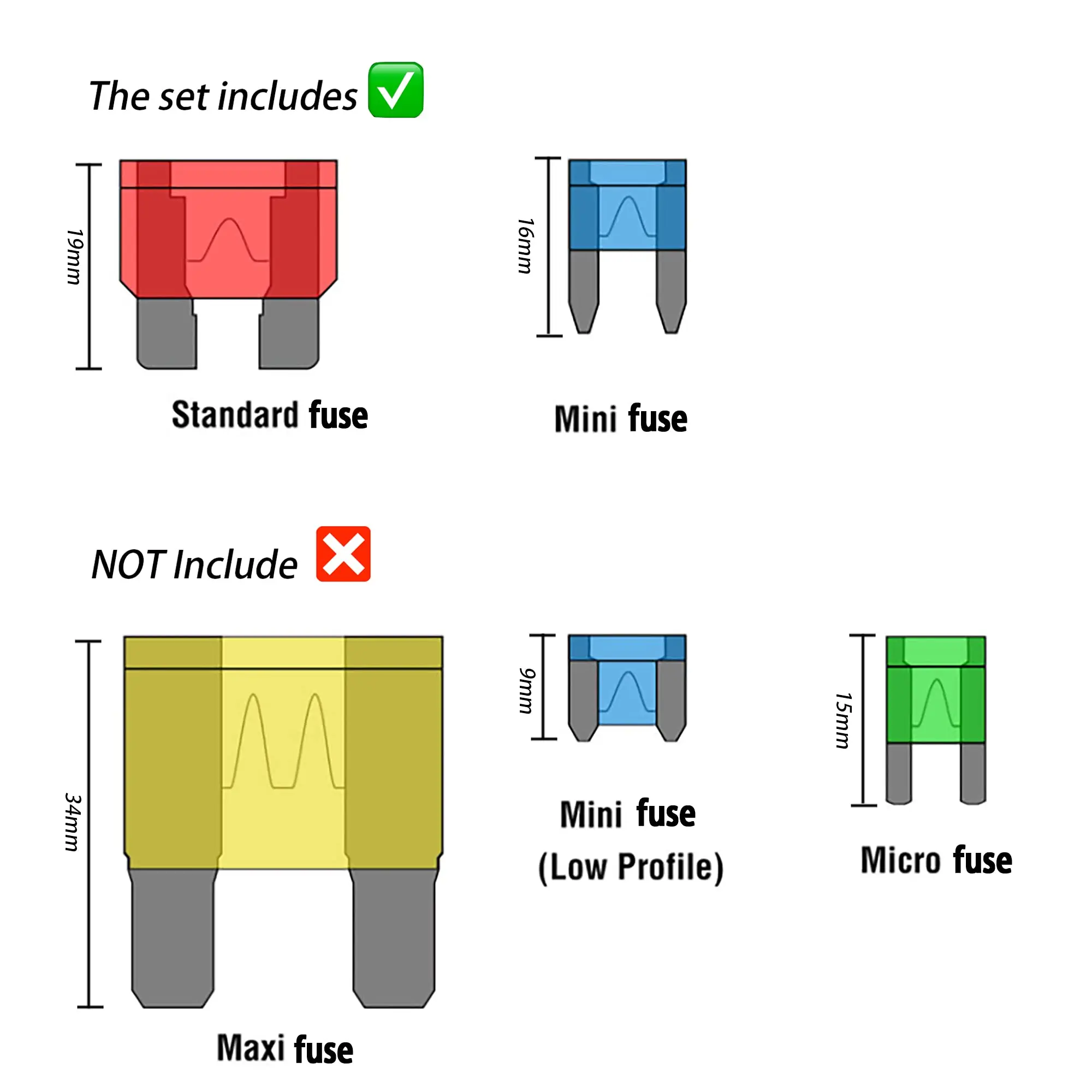 Comprar Kit surtido de fusibles para coche, 120 Uds., fusibles automotrices tipo hoja, fusibles de repuesto de tamaño estándar y Mini para coche/RV/camión/motocicleta