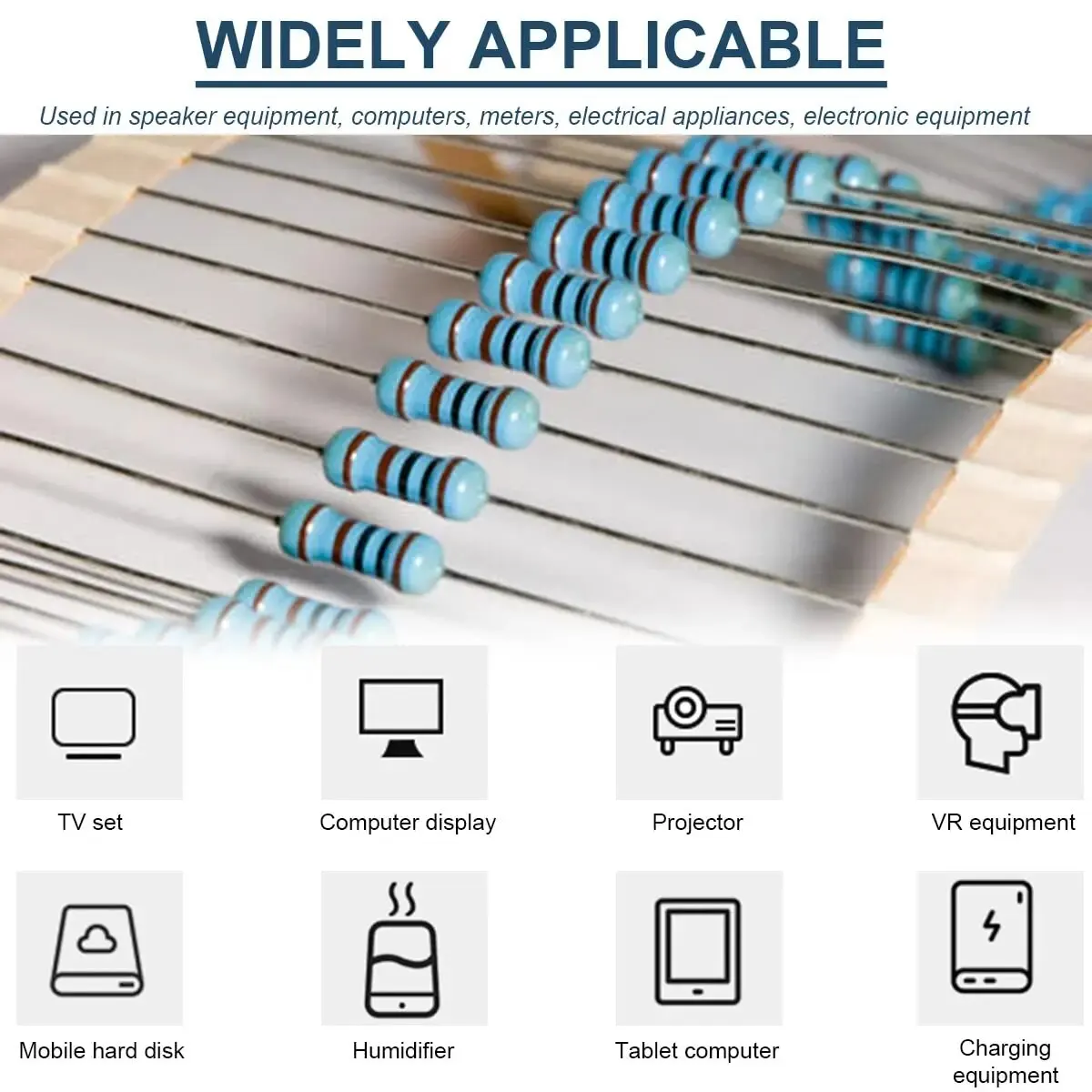 •⚡[Alta precisión] 1/4W precisión 1% resistencia de película metálica, 30 tipos de especificaciones están disponibles. Mejor protección de conexiones de circuitos y transmisión de datos.