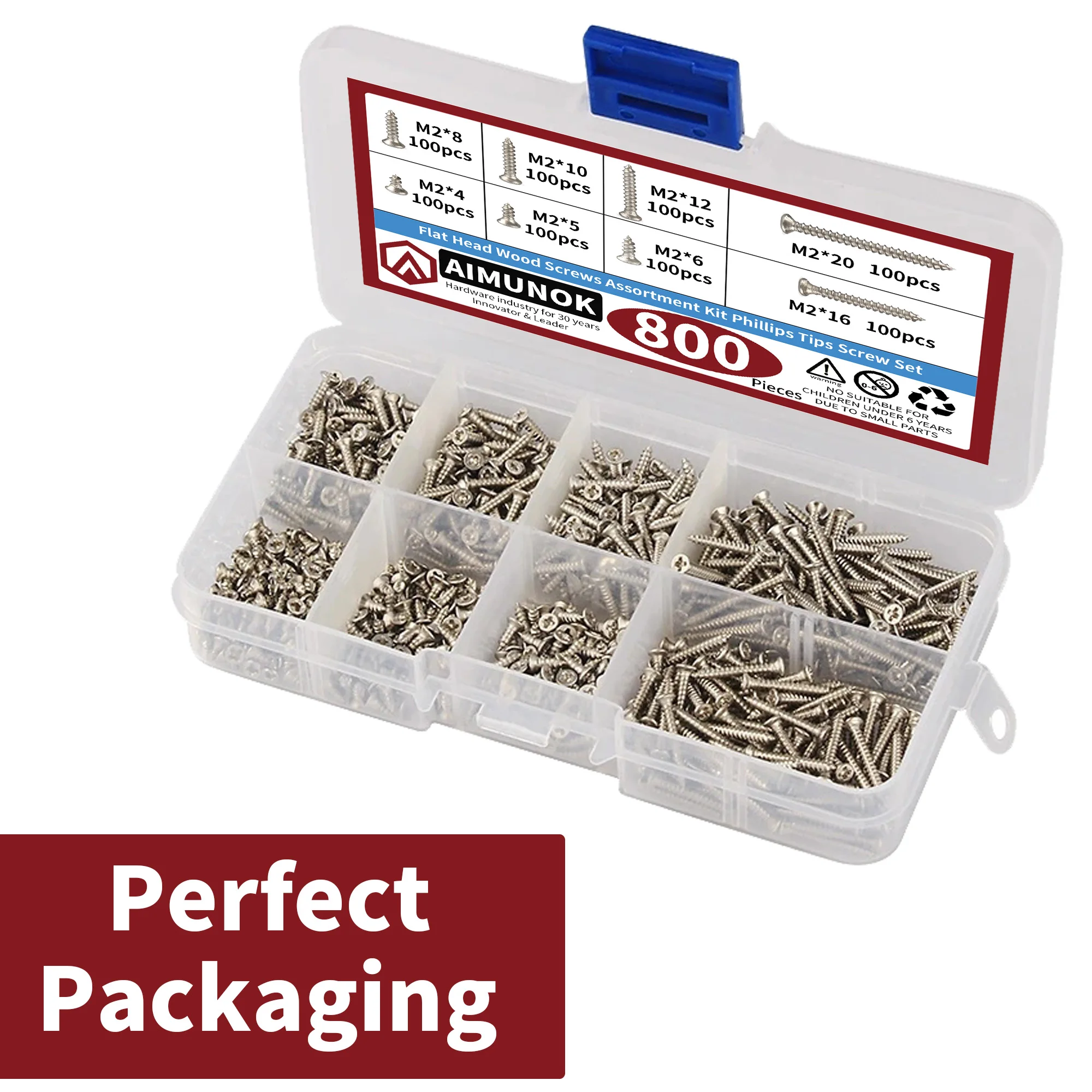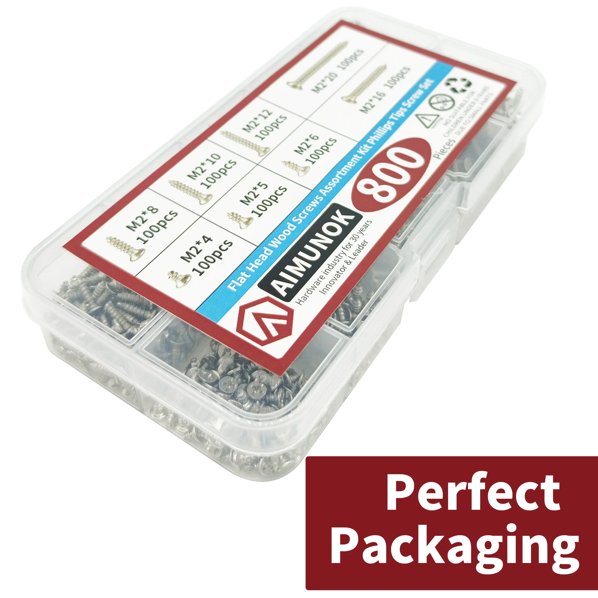 Kit surtido de tornillos autorroscantes M2, 800 Uds., Kit surtido de tornillos roscados, tuerca de bloqueo, juego de tornillos para uñas con rosca de madera, tuerca autoblocante de madera