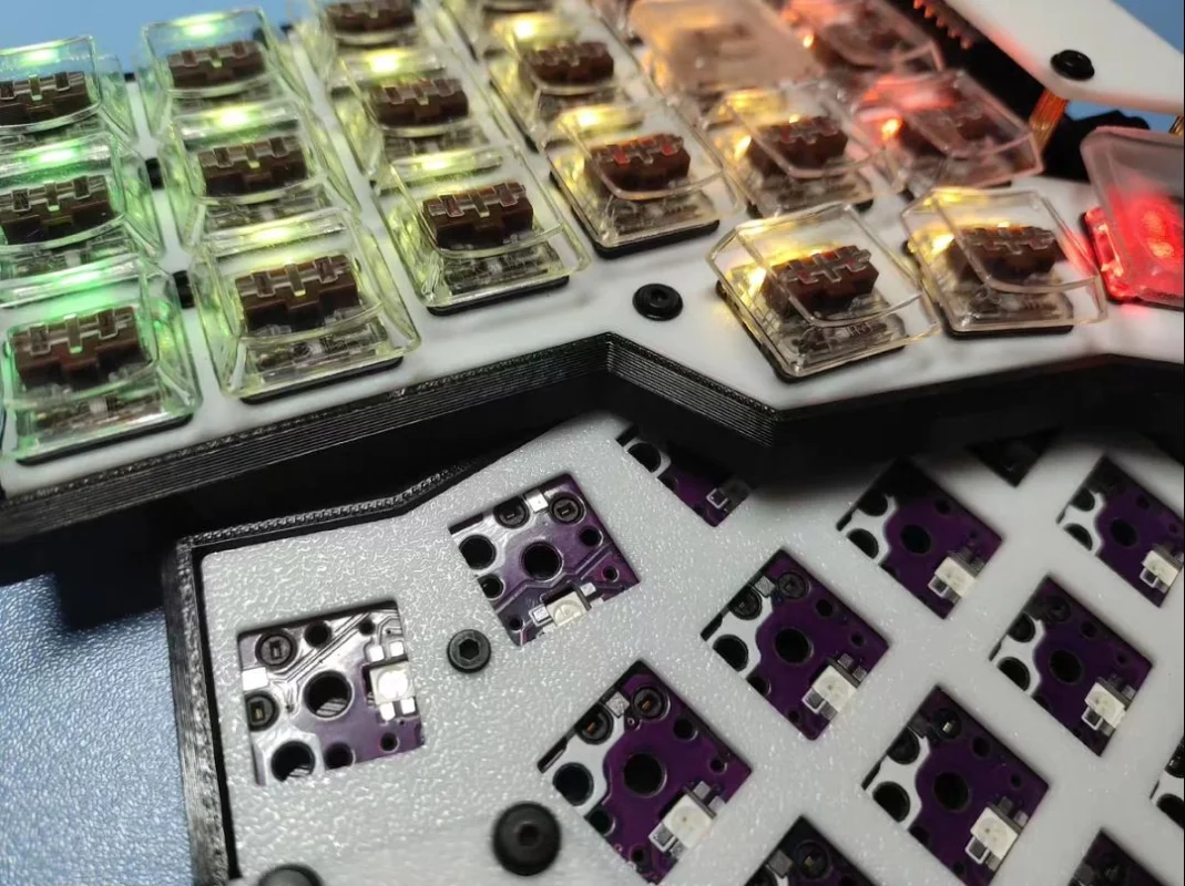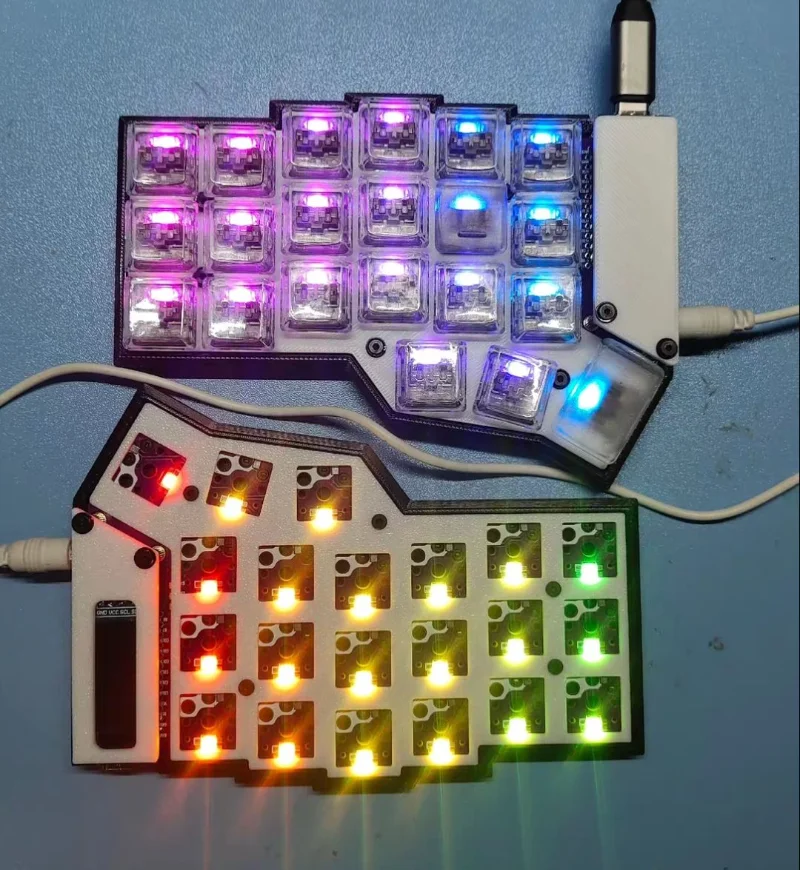 Kit de teclado dividido corné VIA con cable RGB personalizado juego ergonómico de intercambio en caliente teclado mecánico de interruptor bajo para zurdos con pantalla