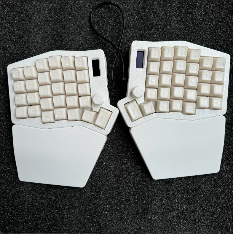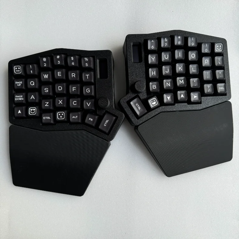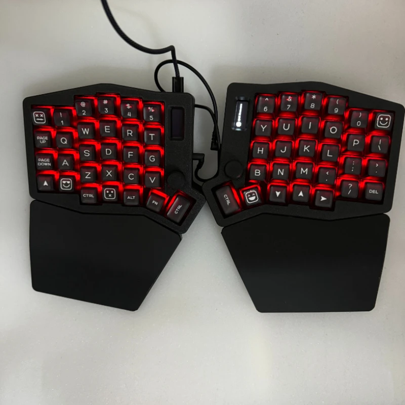 The keyboard configuration is as follows: 1.58 key positions, hot swappable shaft holder, 2 knobs, 2 OLED screens; 2. The left keyboard can be used independently, while the right keyboard needs to be connected to the left keyboard 3. RP2040 main control, supports via key change, and QMK function is fully enabled. 4. Complete keyboard, ready to use at hand
