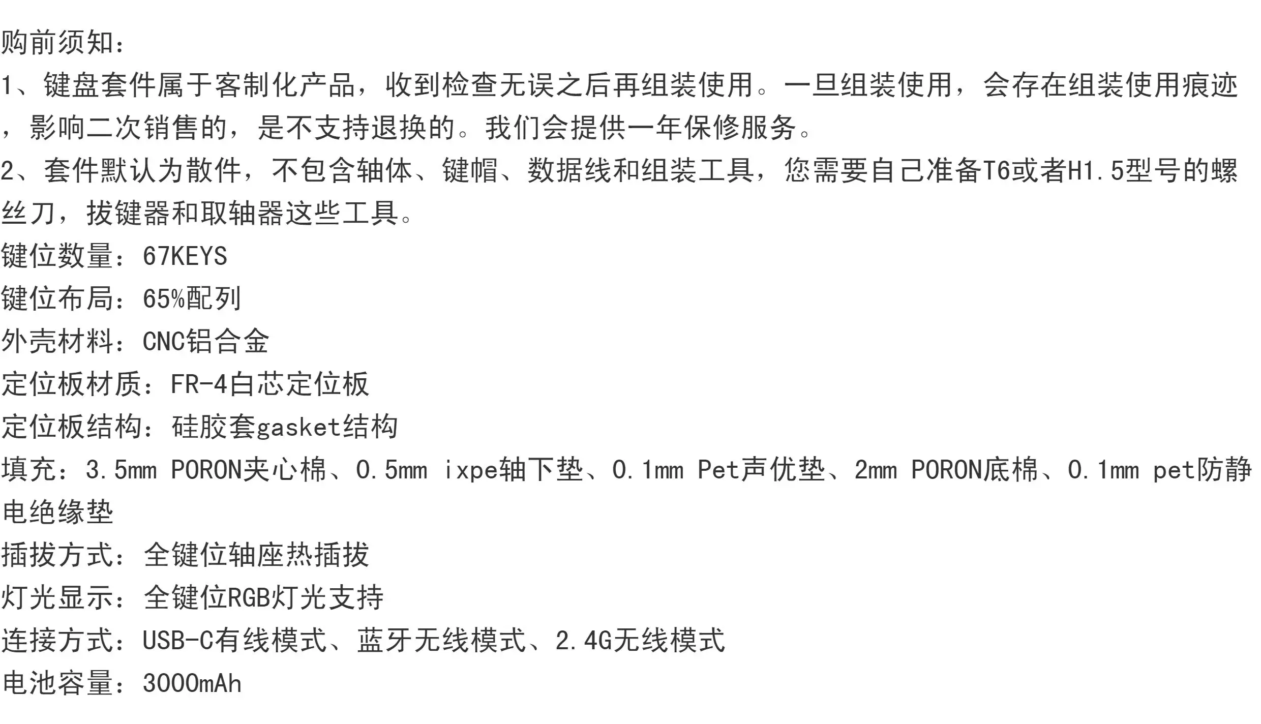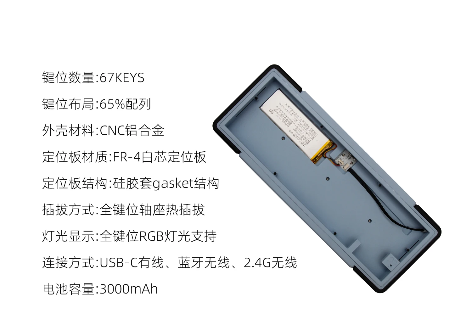 Capacidad de la batería: 3000mAhNúmero de teclas: 67KEYS