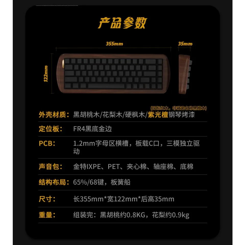 NULL68 Kit de teclado de madera de nogal Kit de teclado mecánico personalizado inalámbrico de tres modos 68 teclas Accesorios para juegos de oficina Soporte VIA