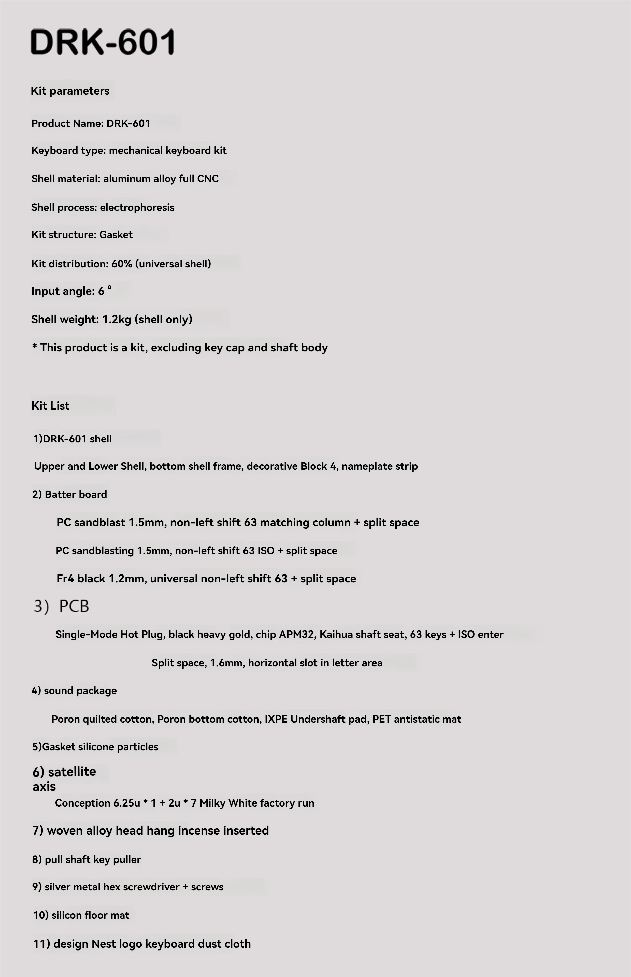 Nombre del producto: Kit de teclado mecánico DRK-601