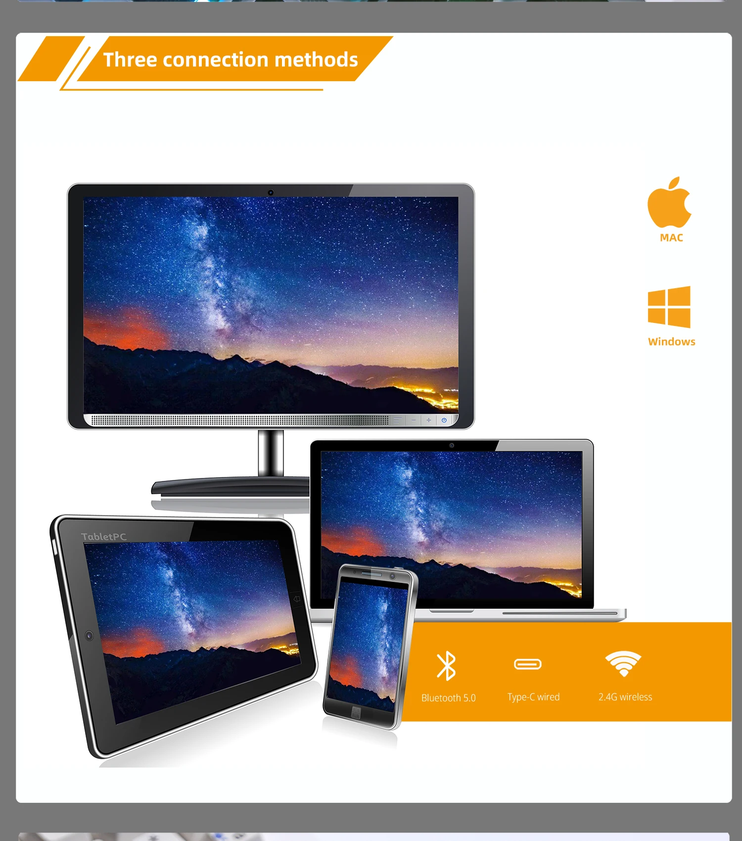 【Modos triples: Tipo-C con cable, Bluetooth 5,0 y 2,4 GHz Disponible】