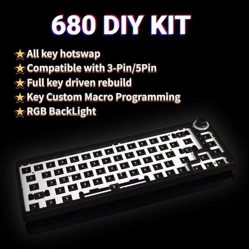 Comprar Kit de teclado mecánico de intercambio en caliente TM680, inalámbrico, 3 modos RGB, compatible con 3/5 pines para teclado con perilla PCB Tm680