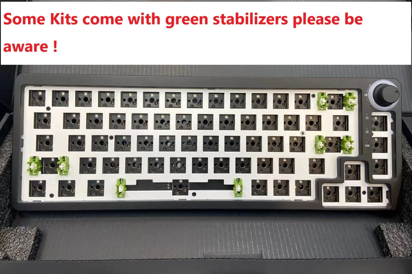 Embalaje que incluye: carcasa, placa PCB, estabilizadores, cable de teclado, manual