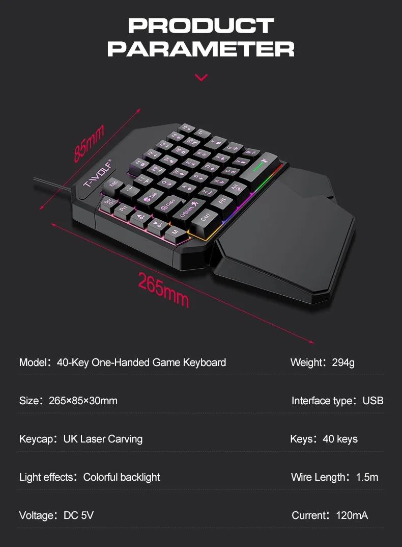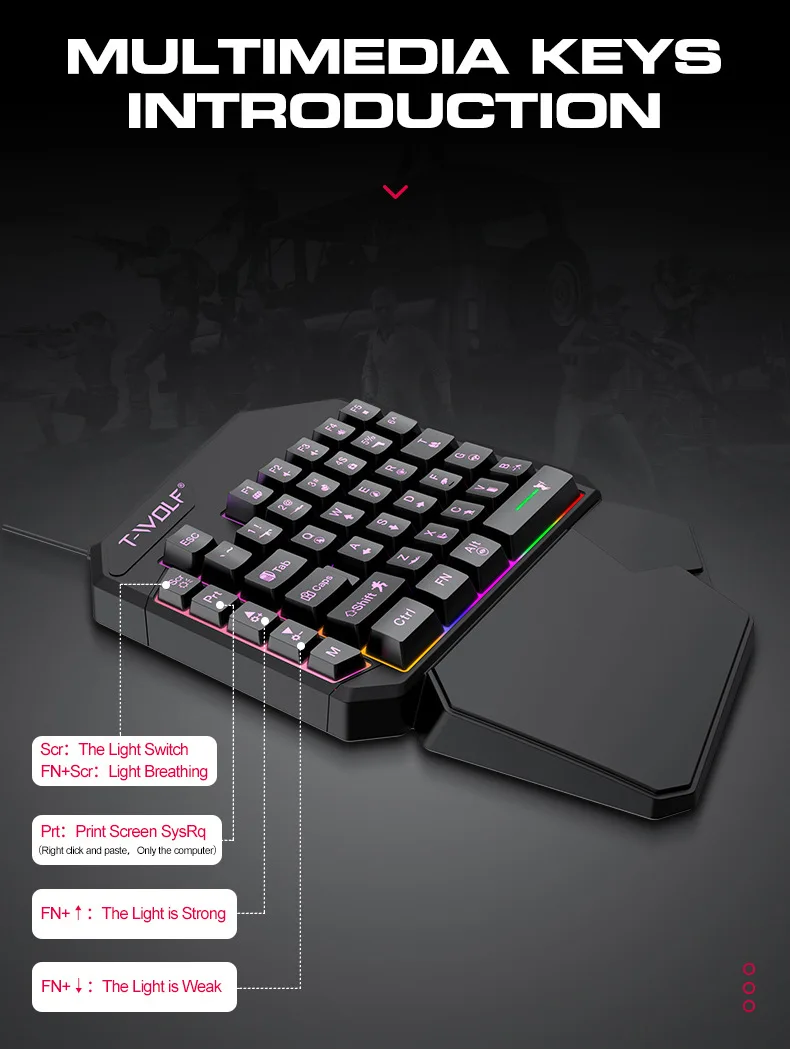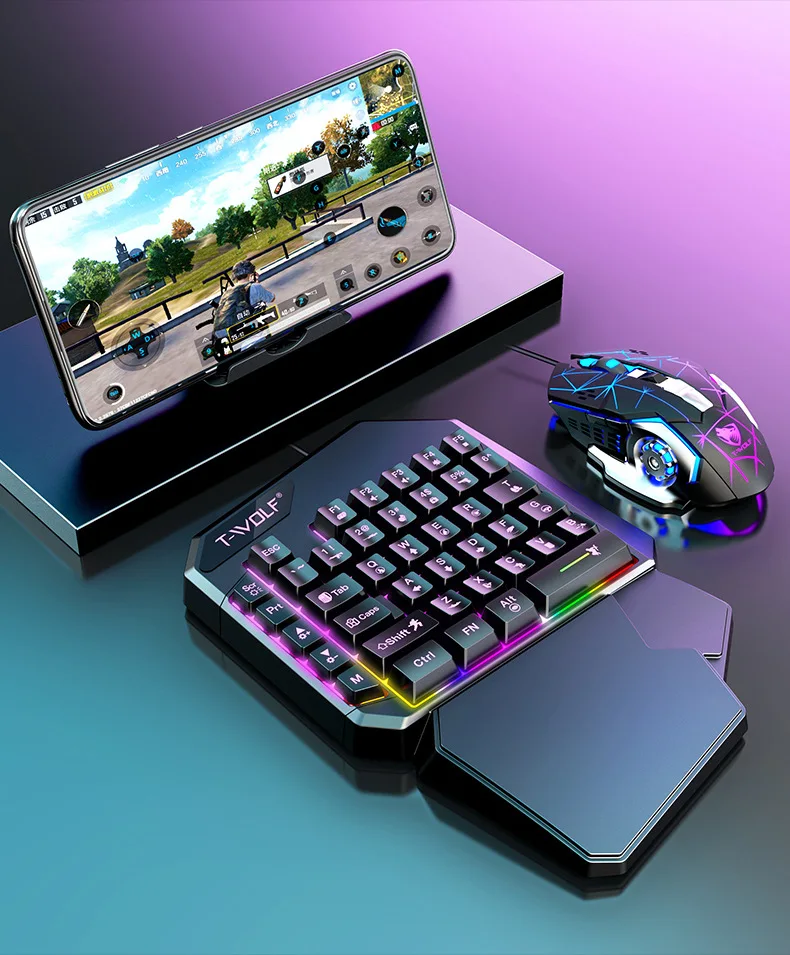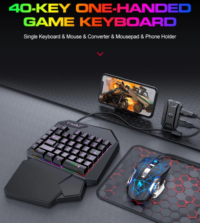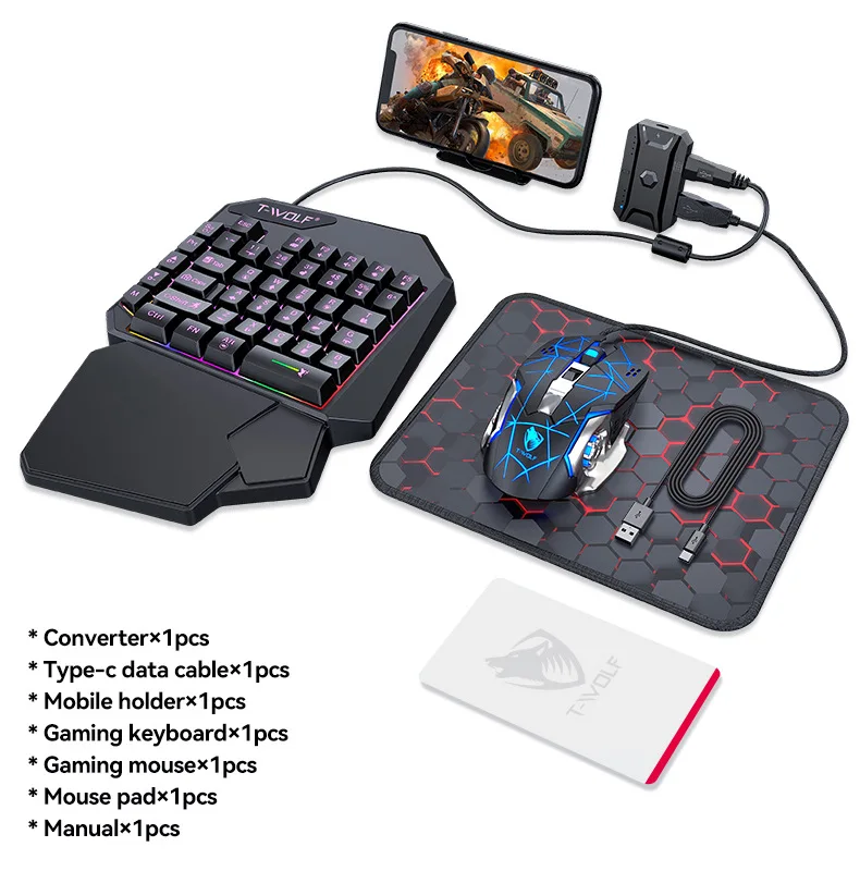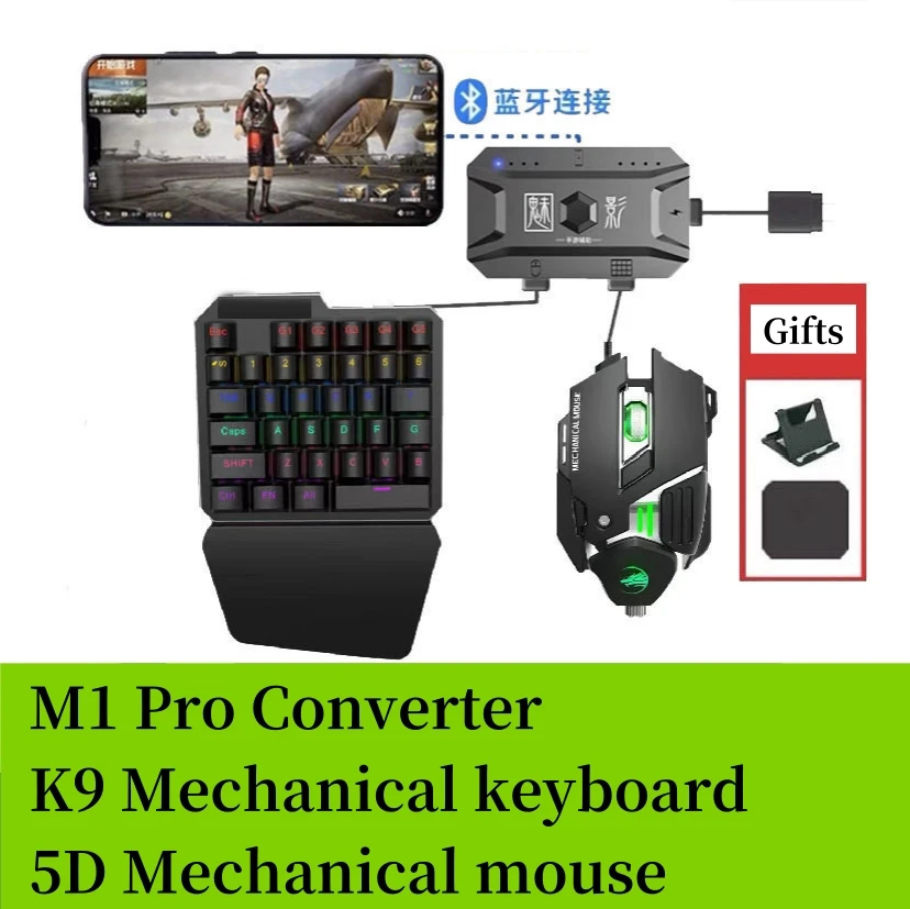 Comprar Kit de teclado mecánico para juegos 5 en 1, teclado de una mano, mouse mecánico para juegos 5D, convertidor M1 Pro, convertidor de juegos móviles, controlador móvil con retroiluminación, accesorios para juegos, diseño