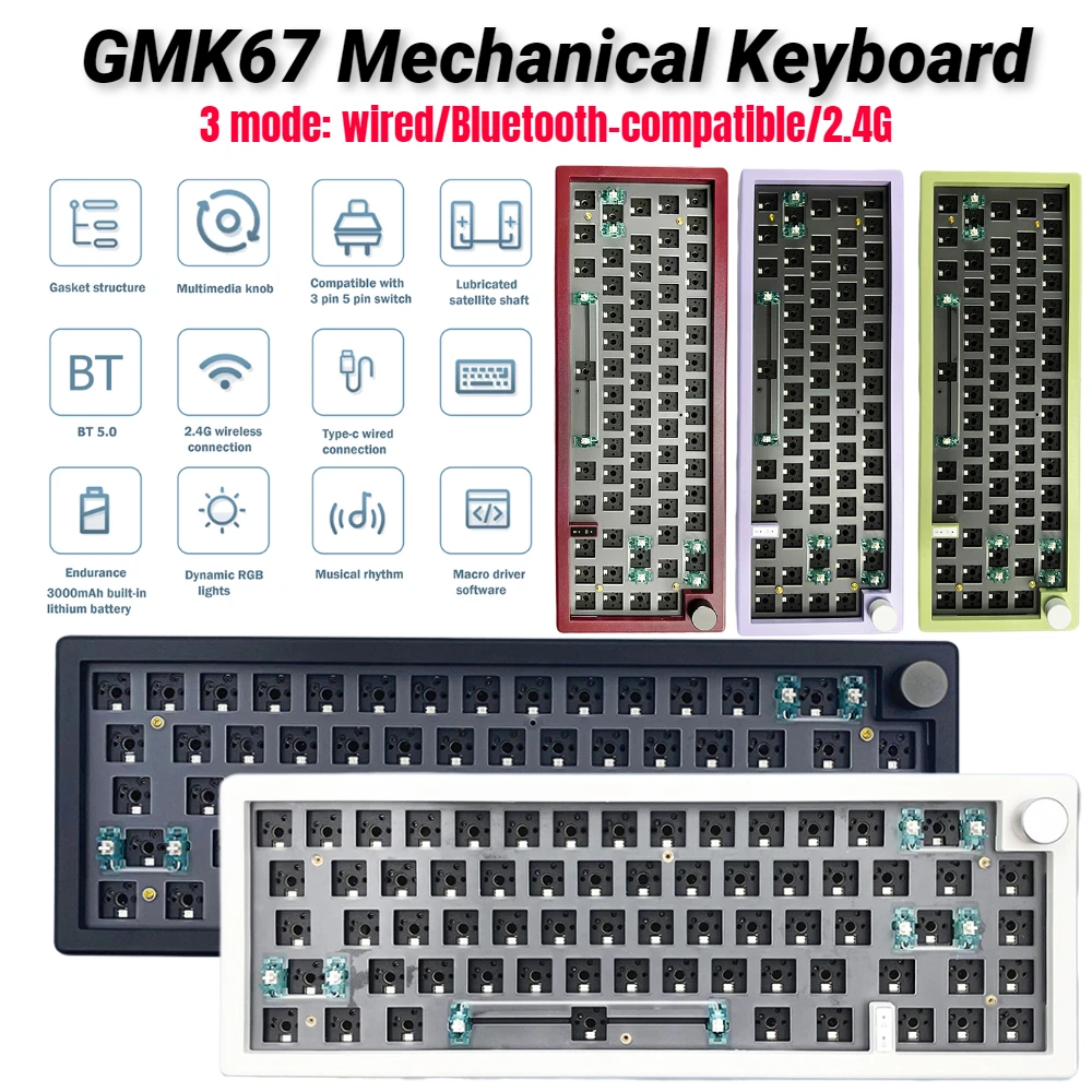 Comprar Kit de teclado mecánico personalizado GMK67, estructura de junta retroiluminada RGB inalámbrica, con cable, Bluetooth 2,4G, intercambiable en caliente