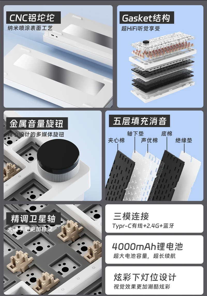 87/285V2 Kit de teclado mecánico personalizado plástico/aleación de aluminio/carcasa de madera GASKET Bluetooth de tres modos 2,4G Kit de teclado de intercambio en caliente