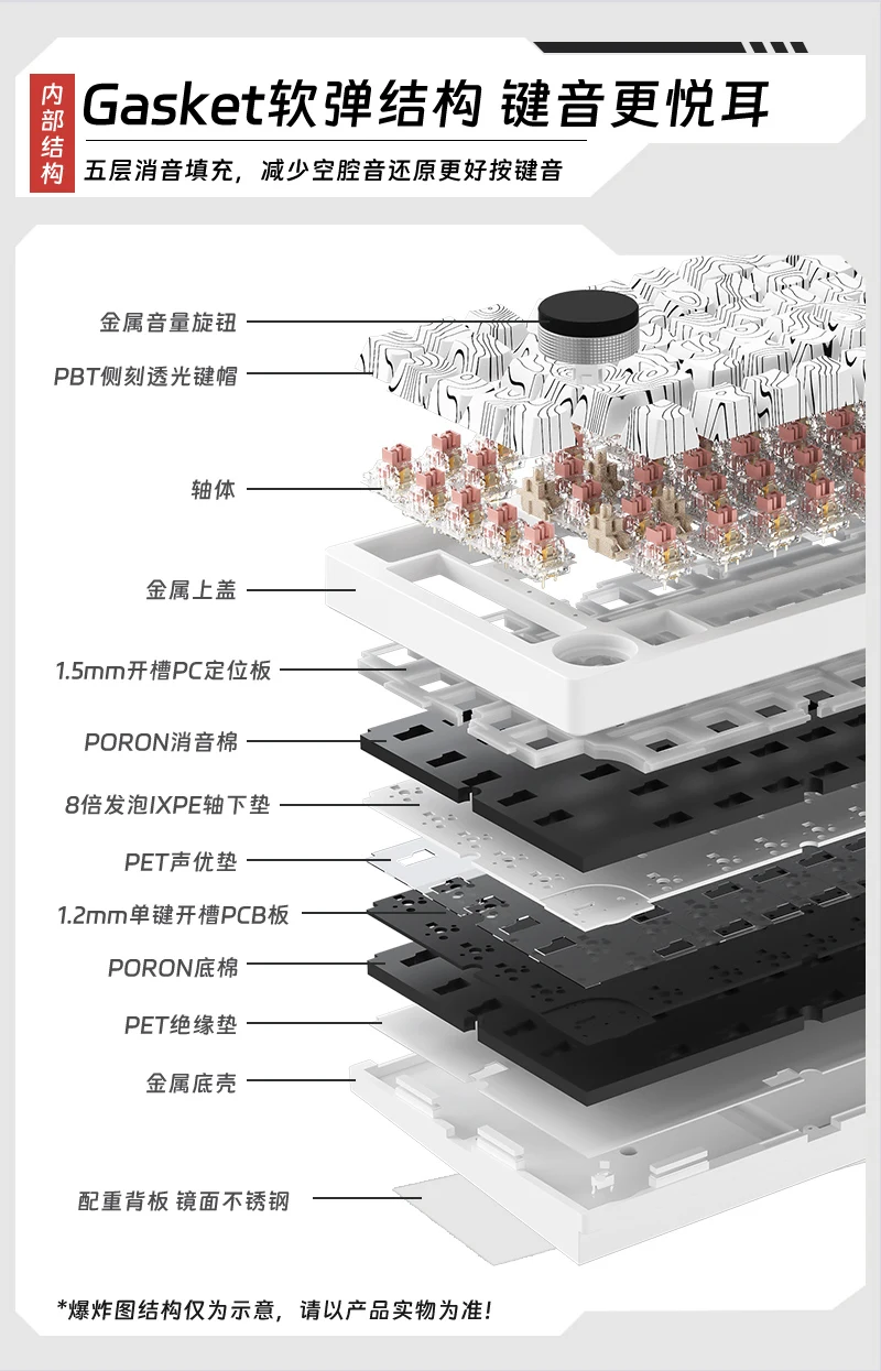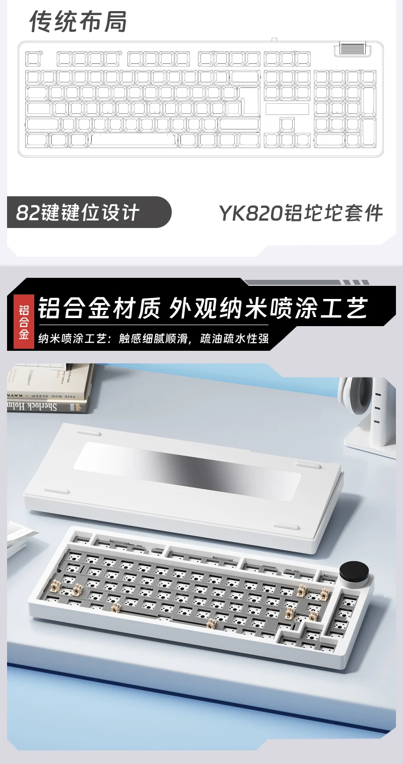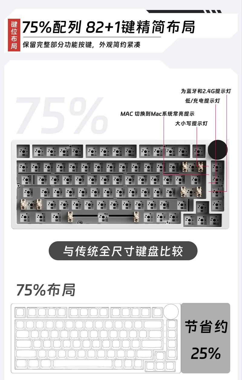 Consejos1.Como este kit de teclado es un producto personalizado, se enviará dentro de 7 a 15 días después de realizar el pedido.2.Como la carcasa se realiza mediante impresión 3D, existen algunas capas y defectos inevitables, que son fenómenos normales y dentro del rango de control de calidad.3. No se recomienda comprar personas sin experiencia en ensamblaje de teclado.Nuestro soporte técnico es limitado y solo podemos brindar orientación dentro de nuestras capacidades.Gracias por su comprensión.Parámetros del productoDiseño del teclado: 75% de diseño (82 teclas)1. Podemos realizar dropshipping y venta al por mayor, puede hacer clic en el enlace exclusivo para obtener información.