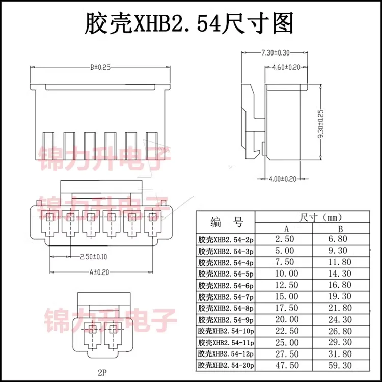 Kit de terminales macho y hembra de paso XHB2.54 2P 3P 4P 5P 6Pin 2,54mm, conectores de cable de cabezal de carcasa, adaptador, 20 juegos