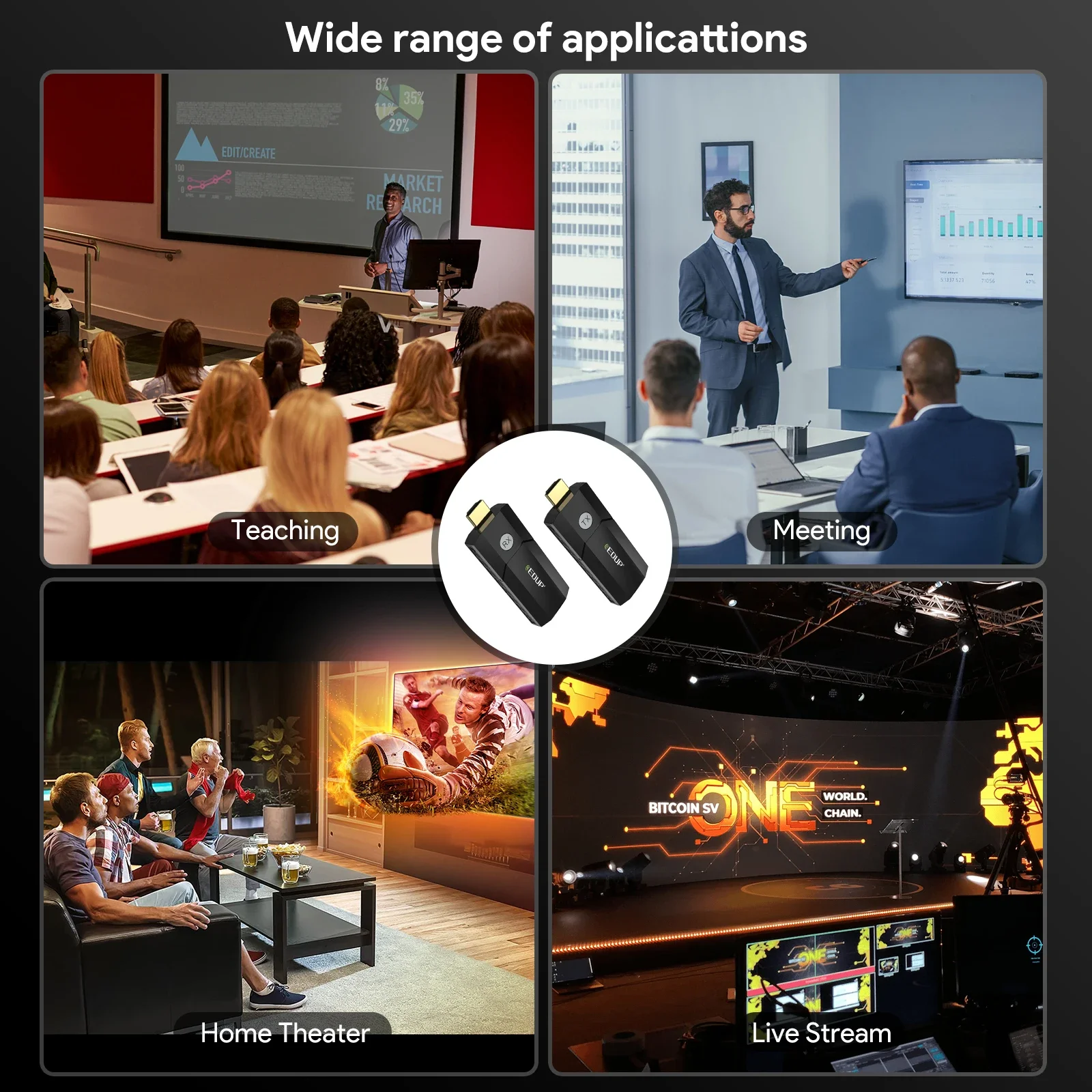 El transmisor y receptor HDMI inalámbrico le permite transmitir y extender señales hasta 30 metros (98 pies) de forma inalámbrica. Tiene una fuerte capacidad antiinterferencia, admite conexión punto a punto. Es una buena solución para reuniones, juegos, entretenimiento en el hogar y educación multimedia, etc.