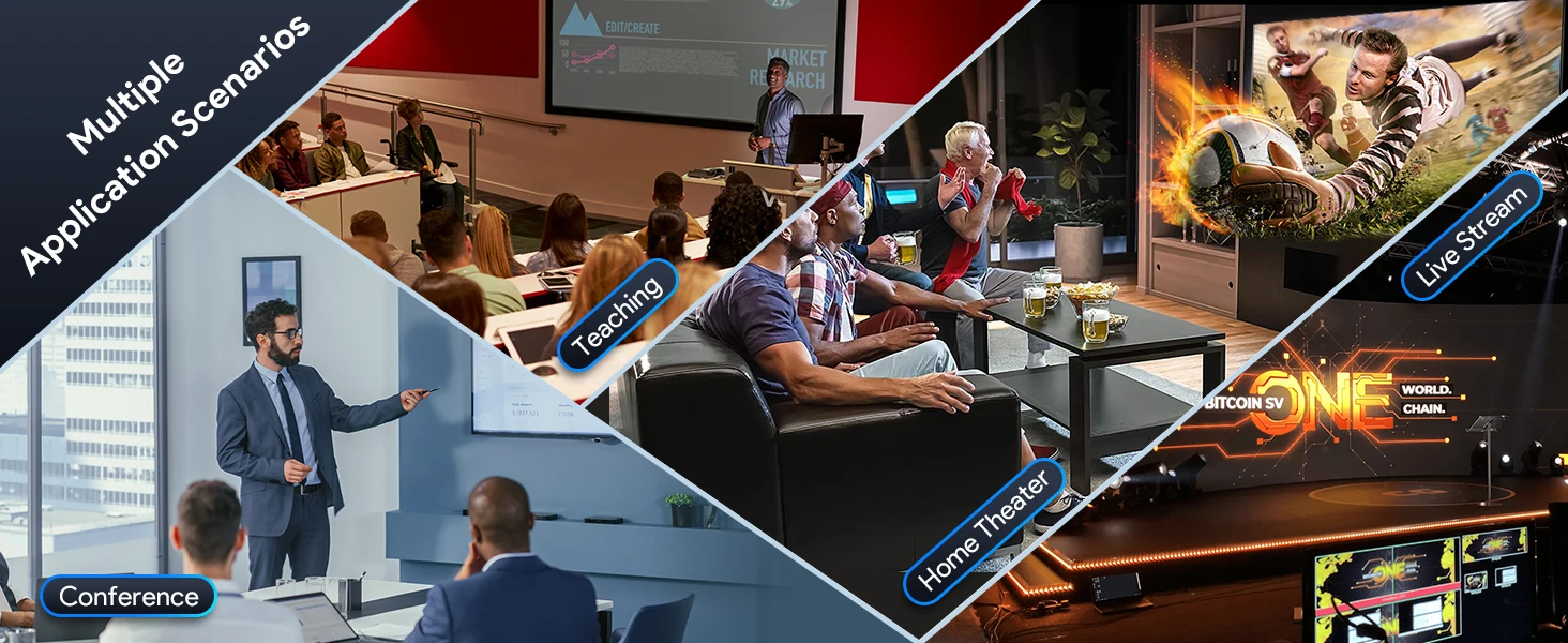 Proyección de pantalla de alta velocidad, más aerodinámica y sin retrasos, adecuada para reuniones de enseñanza, cine en casa, juegos y transmisión en vivo