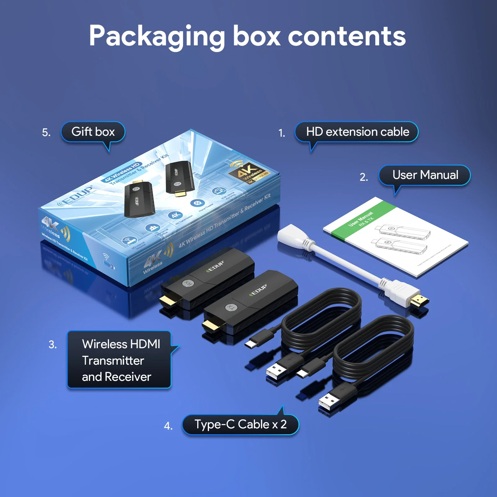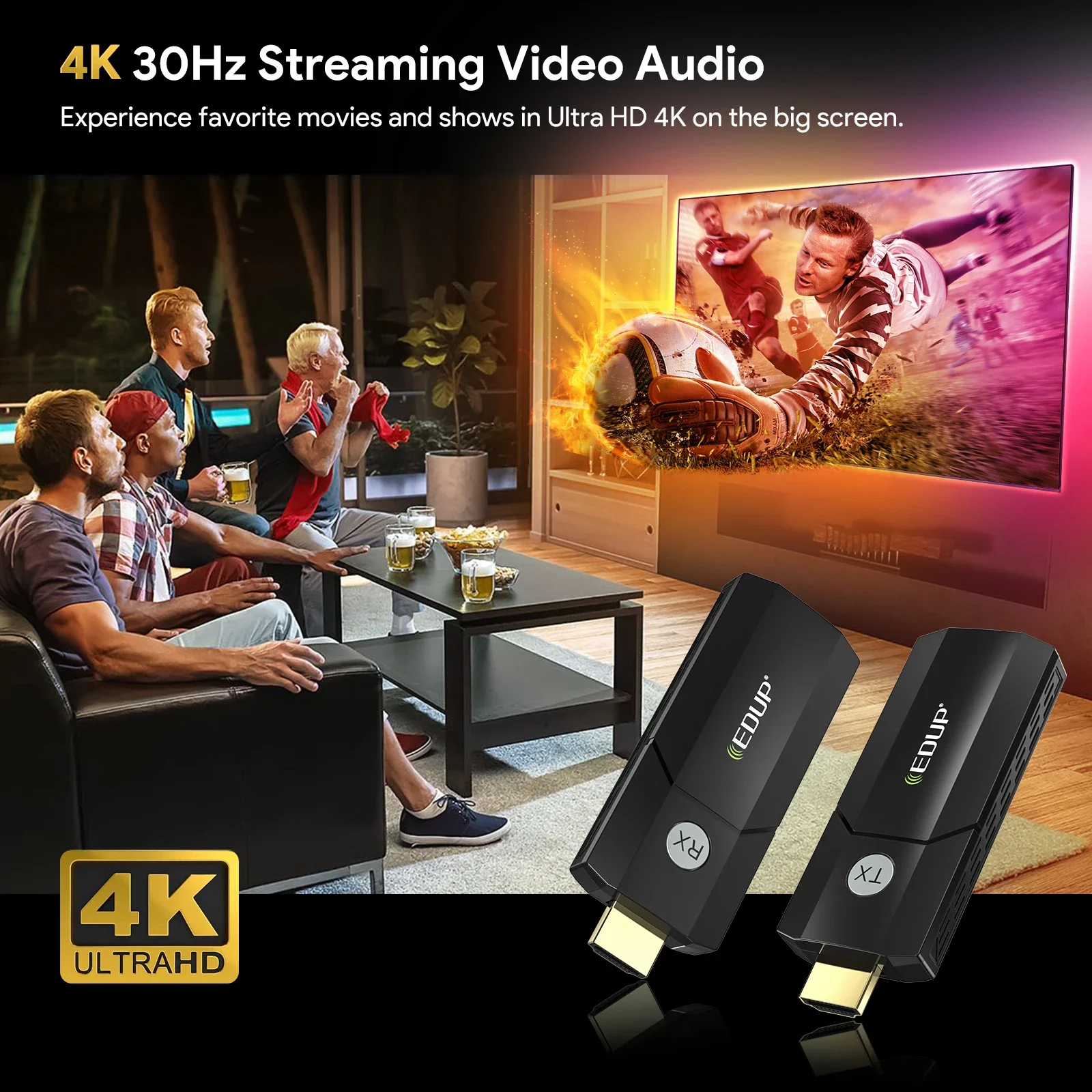 EDUP-Kit de transmisor y receptor HDMI inalámbrico 4K, plug and play, vídeo y audio para monitorear desde ordenador portátil, PC, TV box, proyector, kit extensor HDMI inalámbrico