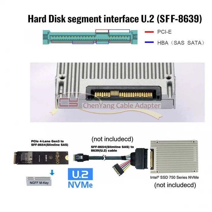 Comprar Kit U.2 U2 SFF-8639 a NGFF m-key NVME a SFF-8654 Slimline SAS PCIe SSD adaptador para placa base