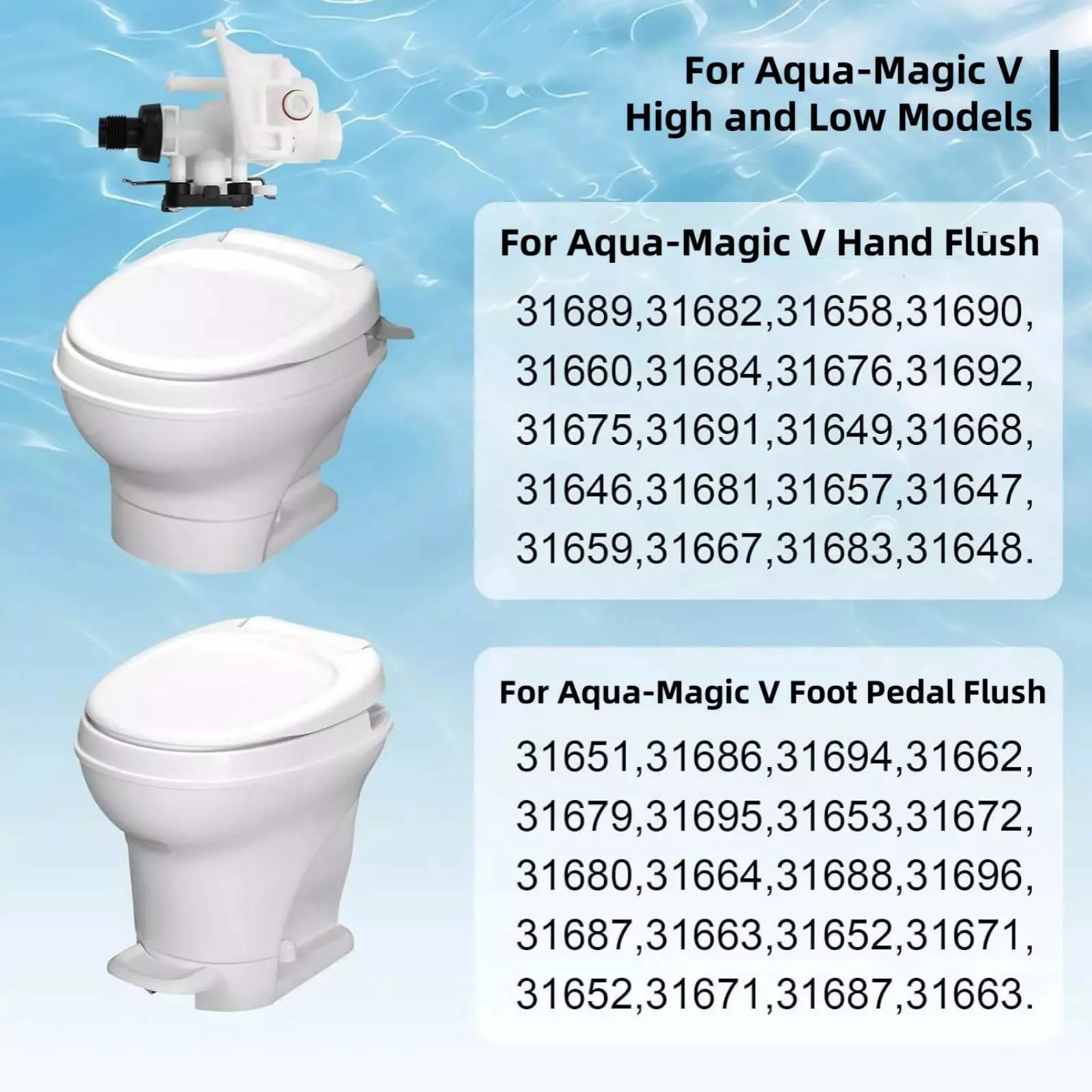 Aplicación: Para inodoros de vehículos recreativos Thetford Aqua-Magic V modelo alto y bajo