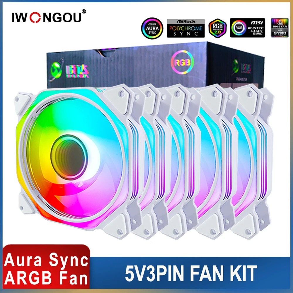 Kit DE VENTILADOR Argb 5v 3 pines, refrigeración de ordenador, IWONGOU Pwm 4 pines Rgb, controlador de Pc Aura Sync, enfriador para funda de PC, espacio ilimitado