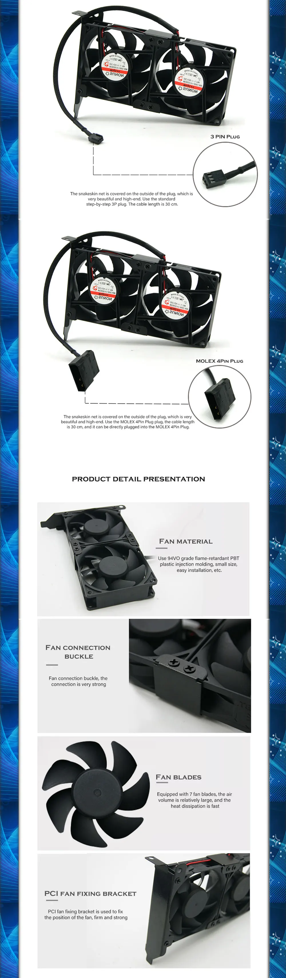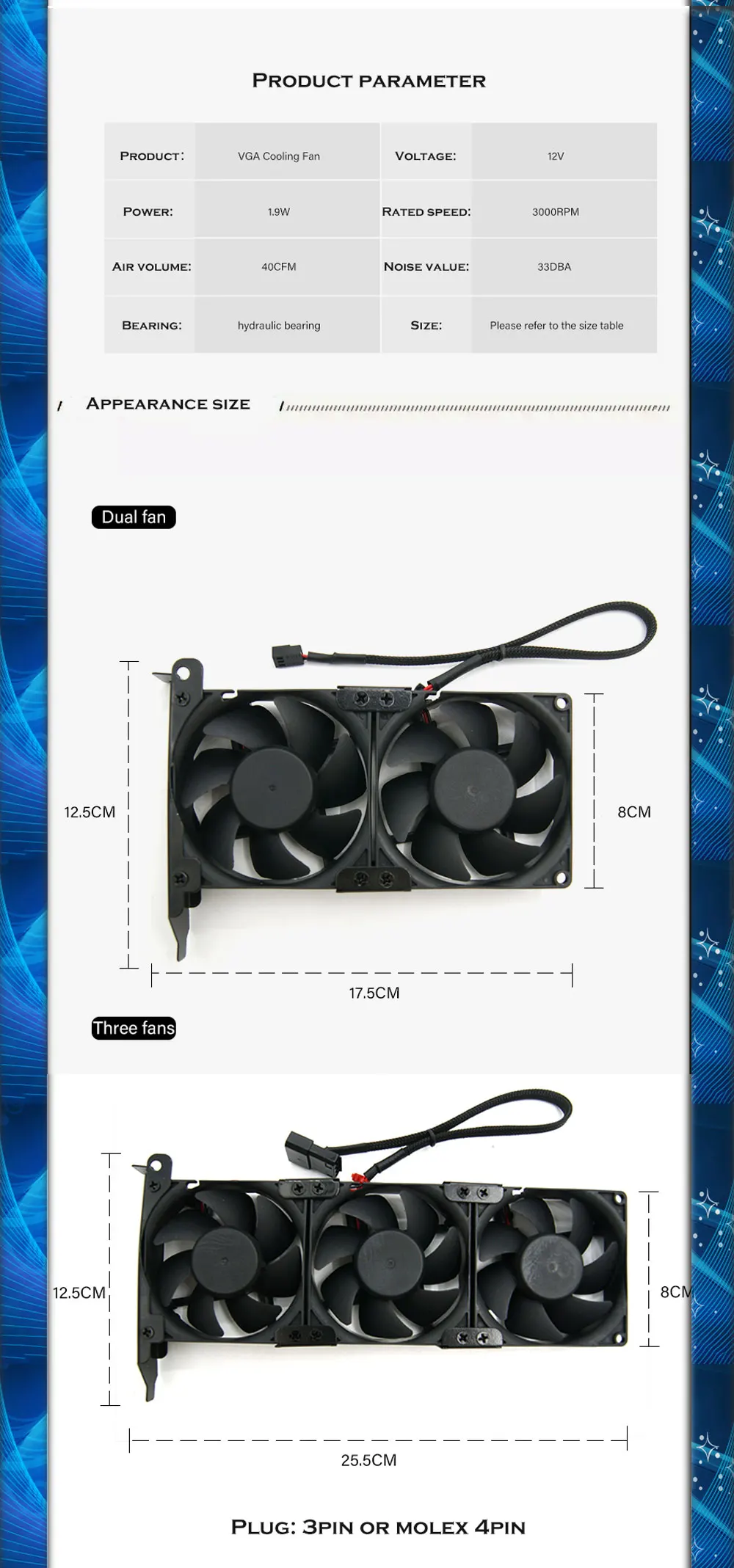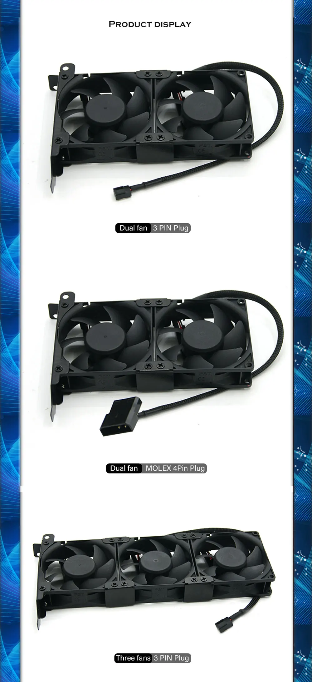 Comprar Kit de ventilador de refrigeración de GPU para radiador VGA, enfriador de 80mm, 2 ventiladores, 3 ventiladores, 3 pines, enchufe MOLEX de 4 pines, 8025 PCI, compañero de tarjeta gráfica