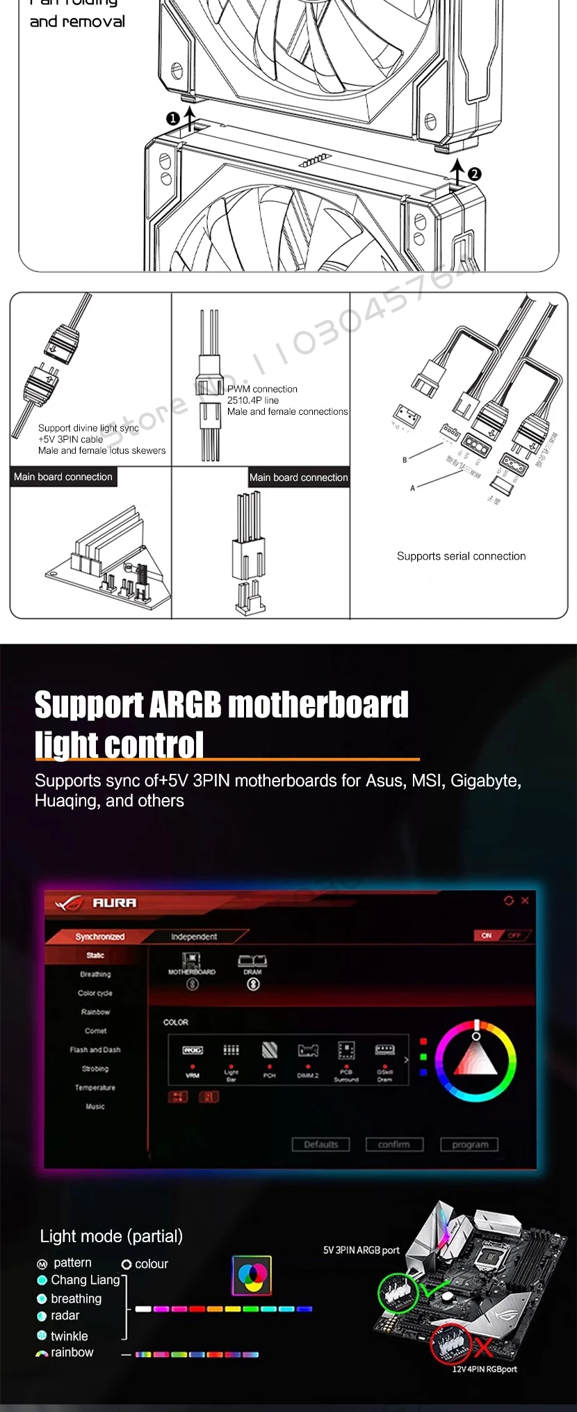 Comprar Kit DE VENTILADOR Uni RGB 3 en 1 para carcasa de ordenador, 12cm ARGB Mirror inalámbrico conectado, silenciador, Watecooler, radiador, paquete Triple