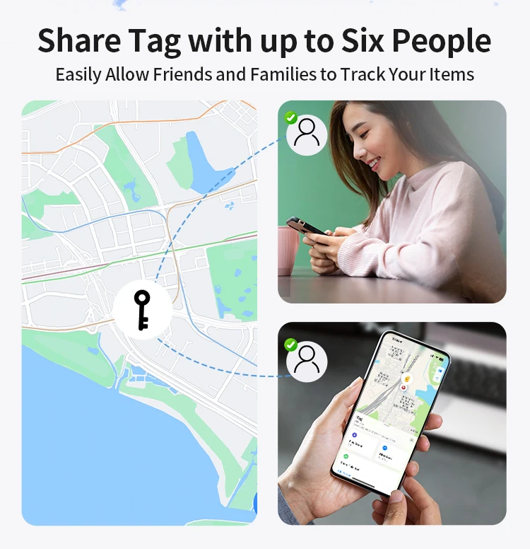【Compartir este artículo】Puedes compartir tu etiqueta de seguimiento con hasta 6 personas, permitiéndoles ver la ubicación del artículo sin recibir notificaciones de seguimiento. Esta función es perfecta para compartir elementos esenciales de viaje con familiares, amigos o colegas mientras mantiene la privacidad y el control de sus datos de seguimiento.