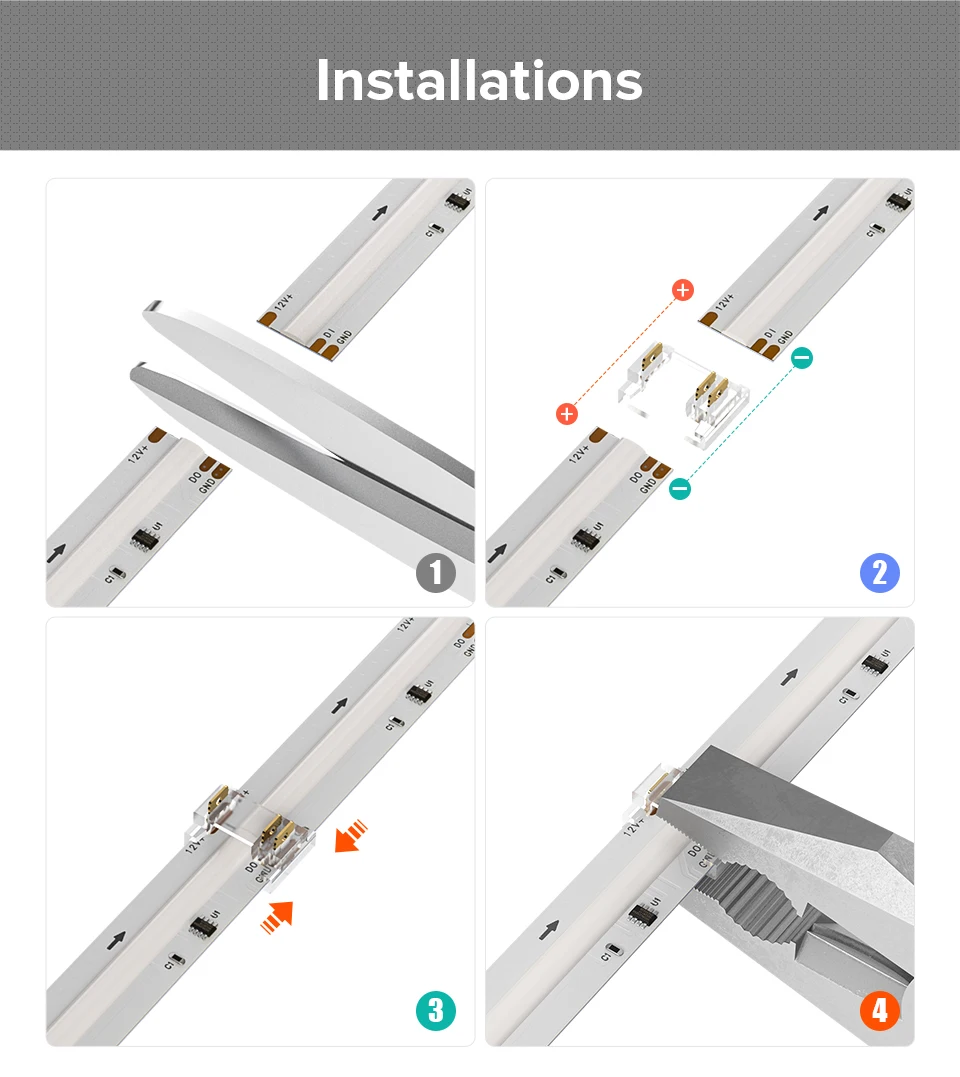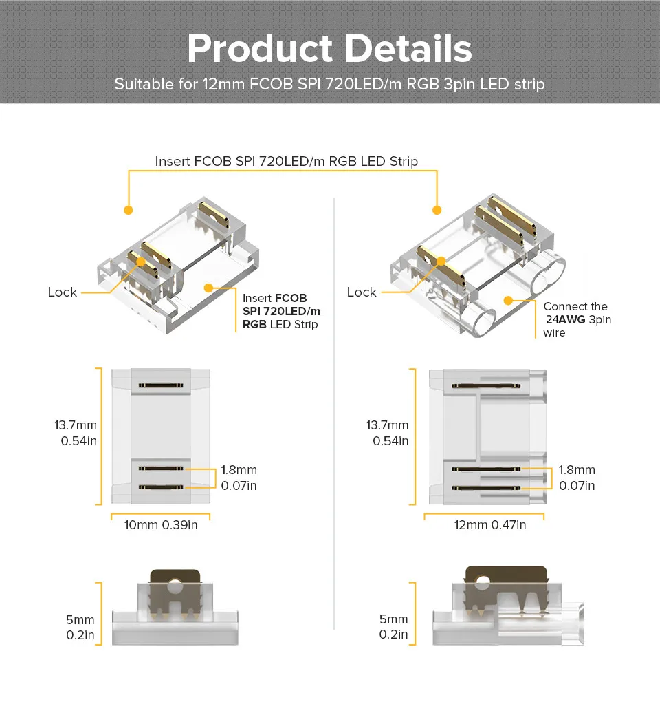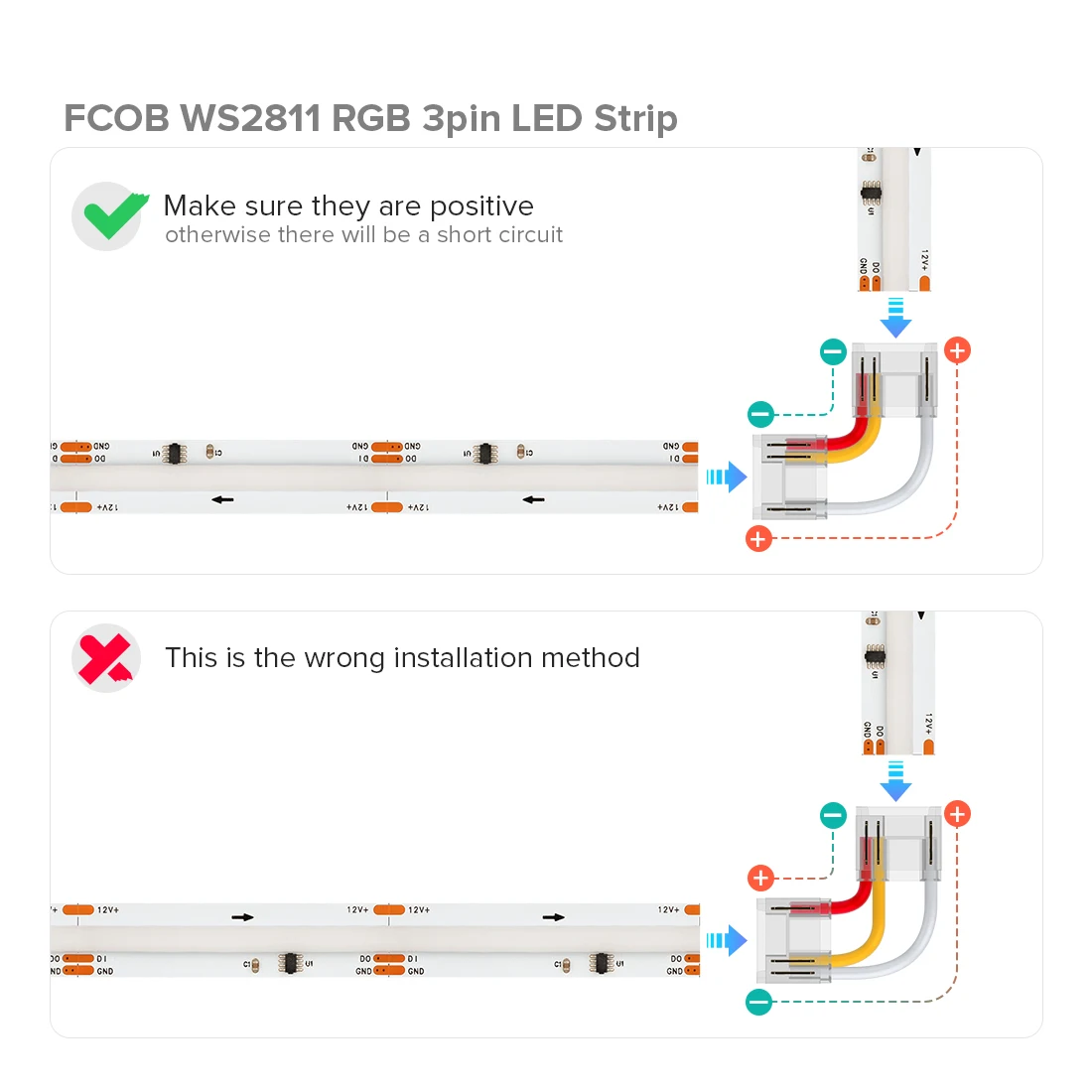 Kits de conectores de cubierta transparente de 12mm, 24, 3 pines, para tira de LED COB RGBIC, conectores transparentes sin huecos con cable de extensión de 5,9 pulgadas