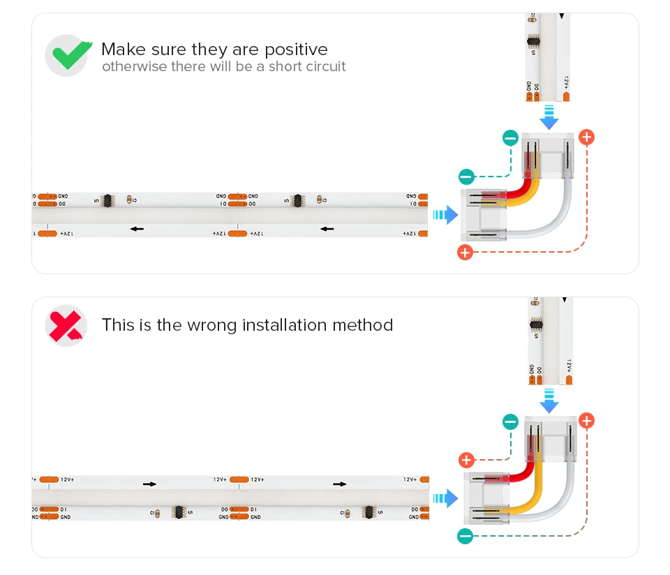Comprar Kits de conectores de cubierta transparente para tira LED COB RGBIC, conectores transparentes sin marco con cable de extensión, 24 piezas, 3 pines, 12mm
