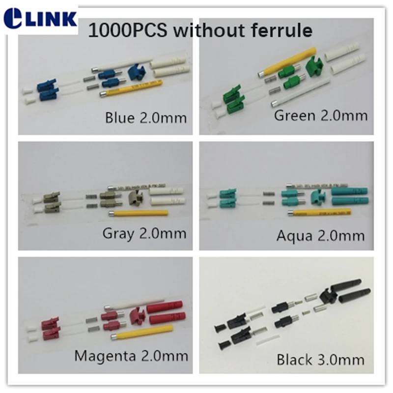 Comprar KITS de conectores de fibra 1000 Uds LC DUPLEX sin virola APC UPC SM MM OM3 OM4 3,0mm 2,0mm 0,9mm ftth SC accesorios de conector