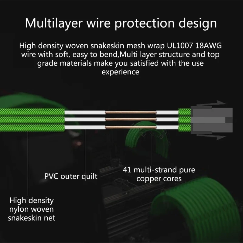 Los nuevos cables con funda individual no se encogen térmicamente para garantizar un montaje de cables de alta calidad y soporte para altas corrientes con el fin de lograr un rendimiento y estabilidad superiores.