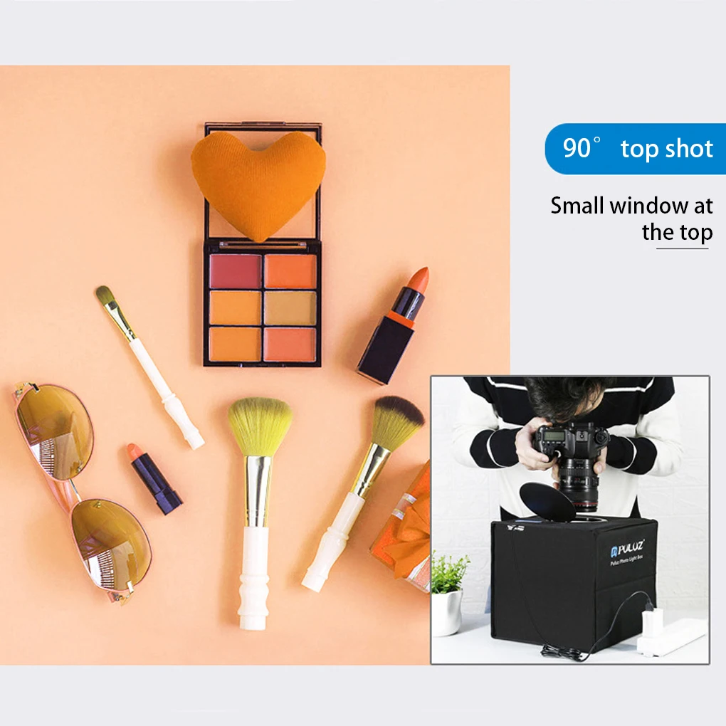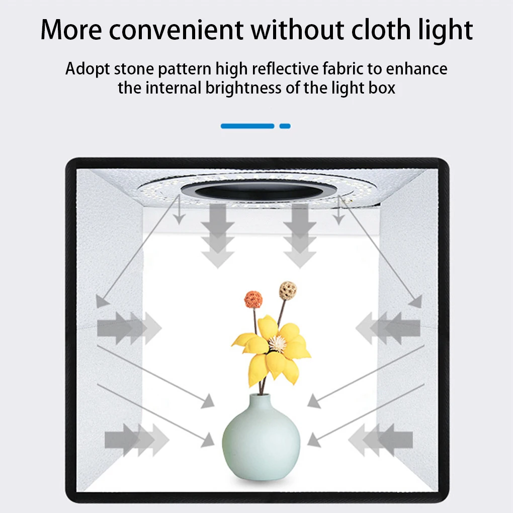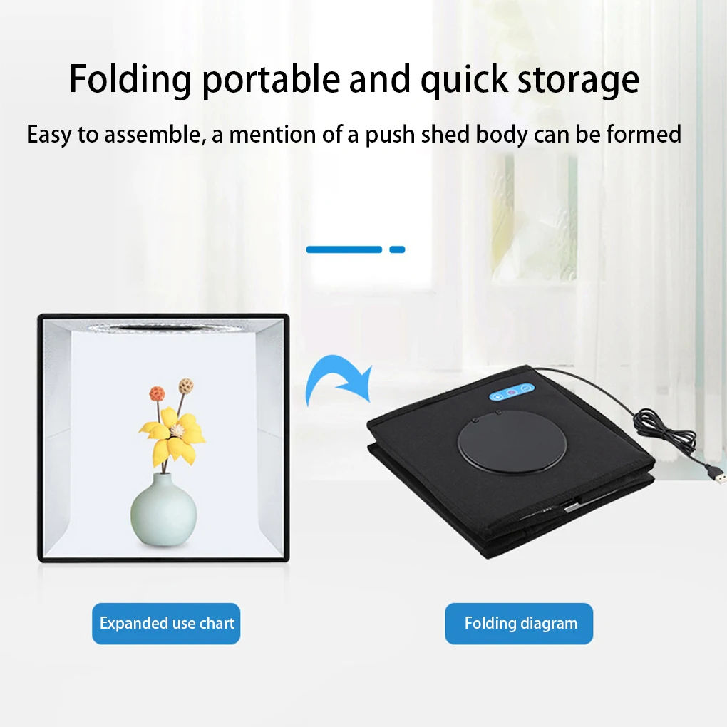 Fácil de montar: puede desplegar este cobertizo de caja de luz LED y colocarlo en cualquier superficie para obtener un buen fondo para la fotografía comercial de artículos pequeños y tomar fotos del producto.