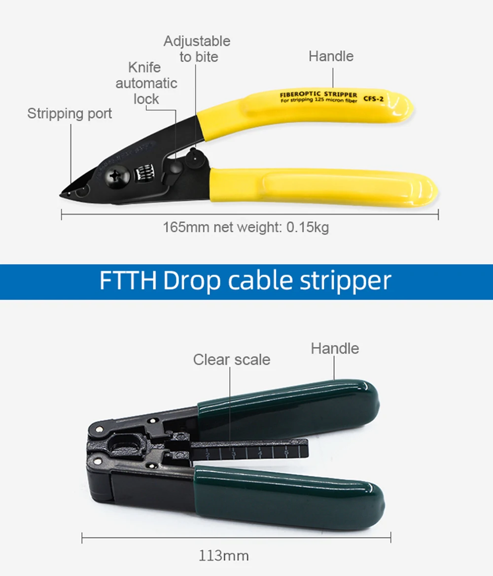 Comprar Kits de herramientas de empalme 3 en 1, pelacables de fibra óptica de CFS-3, pelacables de caída FTTH y tijeras de Kevlar de fibra óptica