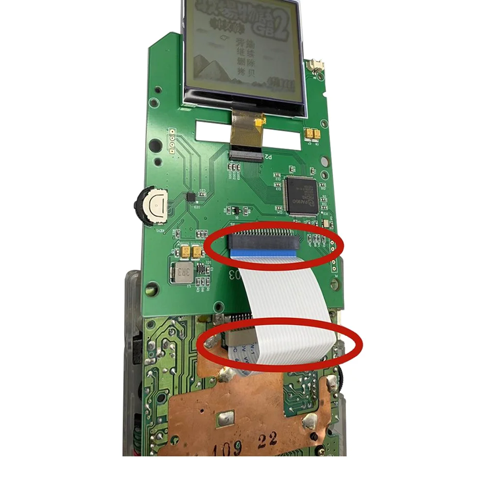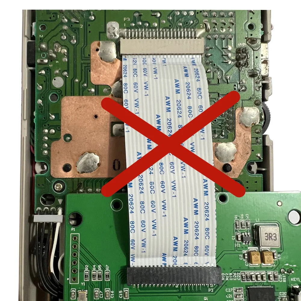 Nota:Al conectar este cable plano con la placa base, no inserte ambos extremos del cable plano en la misma dirección en el enchufe.Como se muestra a continuación.¡Insertar un cable inverso como este quemará el chip principal de la pantalla LCD!!