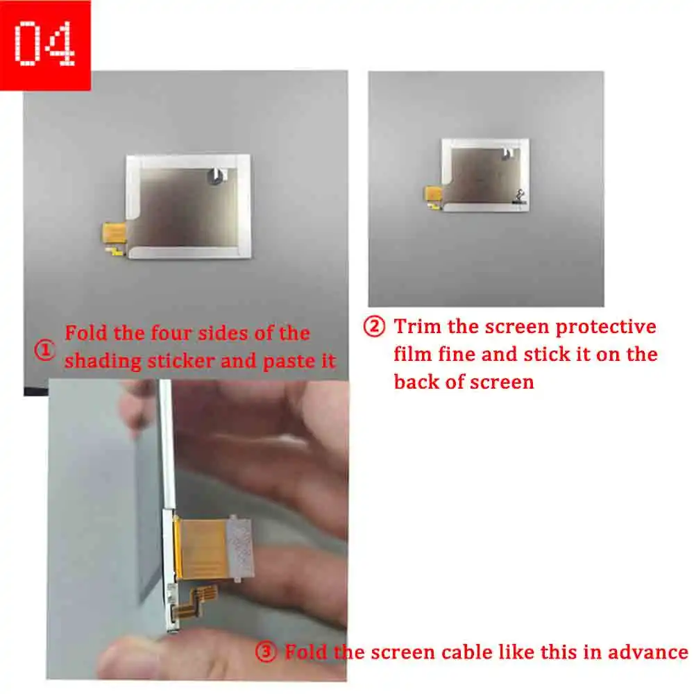10.Recorta bien la película protectora de la pantalla y pégala en la parte posterior de la pantalla;