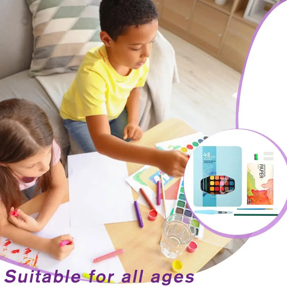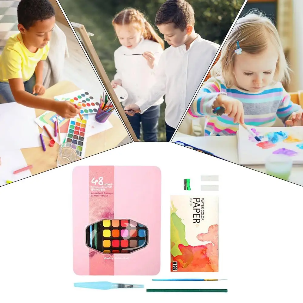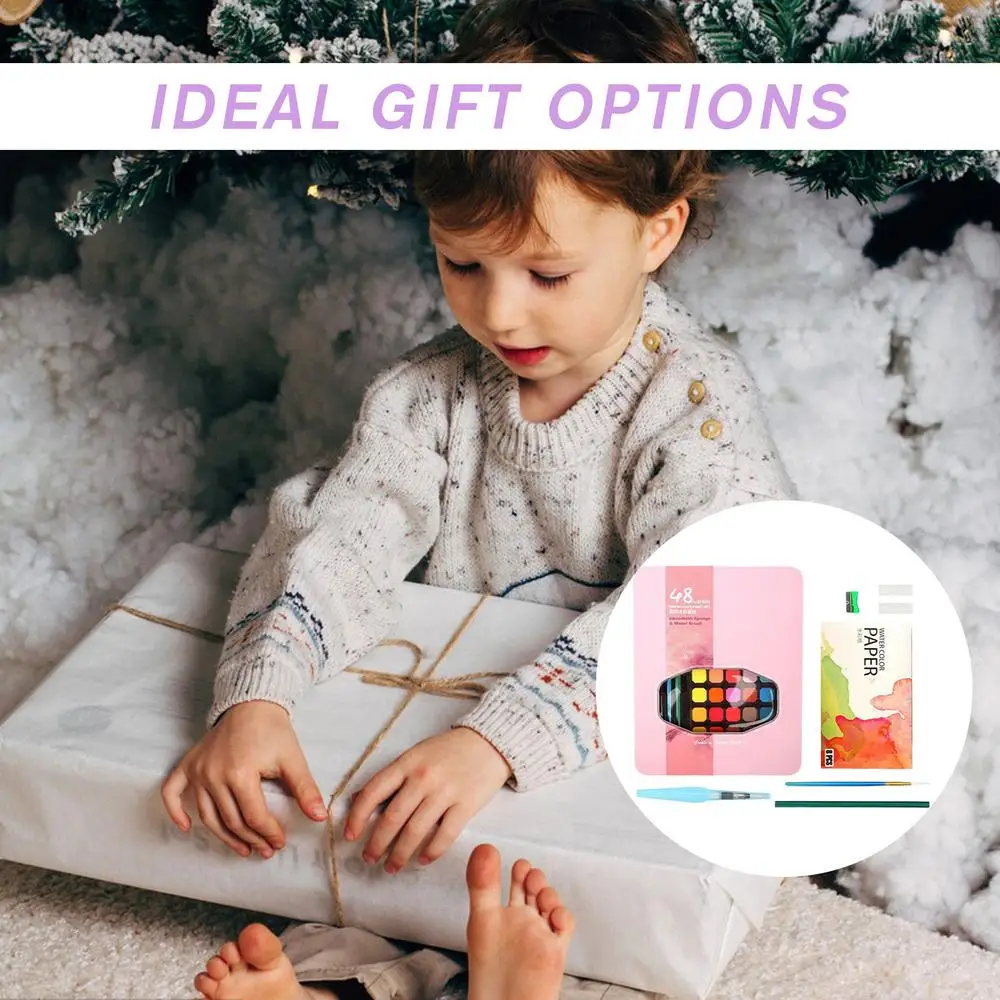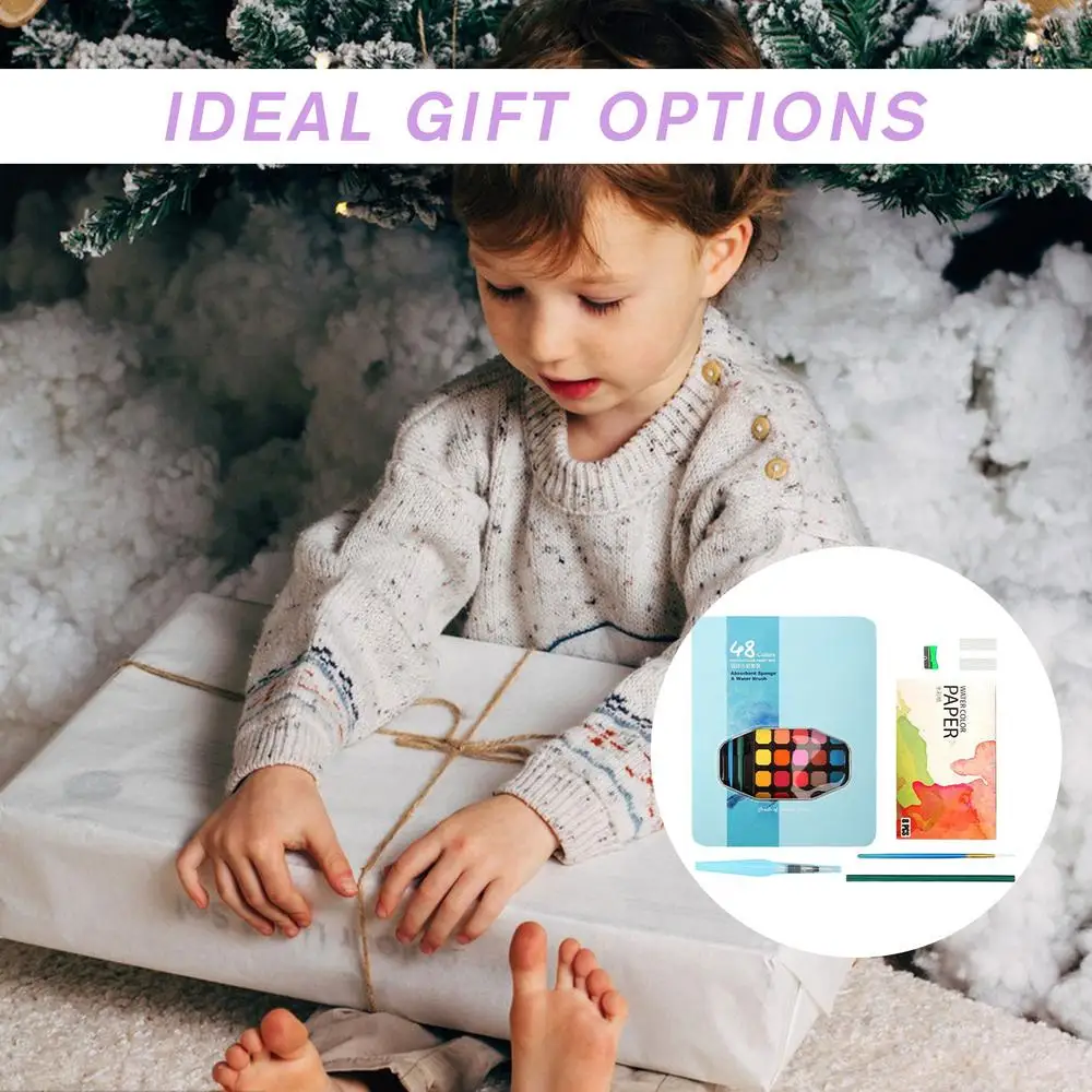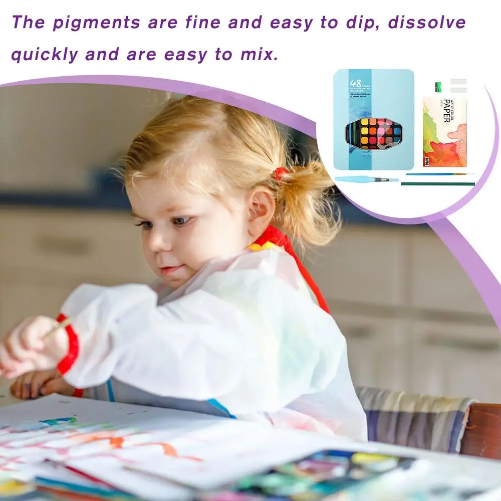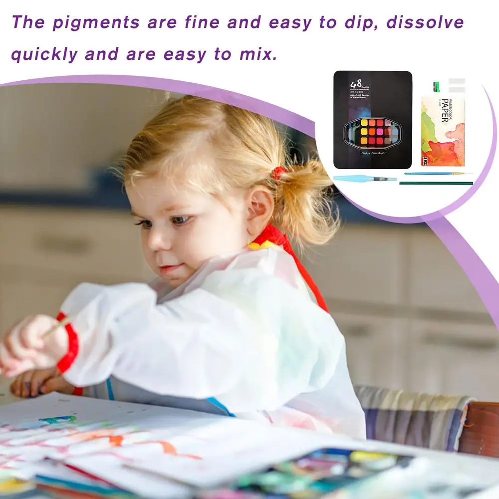 ¡Desbloquee la creatividad de su hijo con nuestro juego de pintura de acuarelas para niños y adultos!Nuestra paleta se disuelve rápidamente y se mezcla sin esfuerzo, lo que la hace ideal para principiantes.Ya sea en interiores o exteriores, este conjunto es ideal para entusiastas del arte de todas las edades.La paleta hace que pintar sea divertido y atractivo para los artistas jóvenes, a la vez que es ampliamente aplicable.