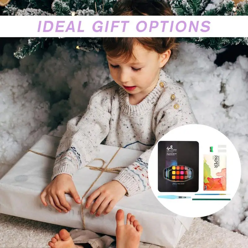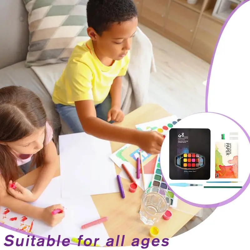 ¡Desbloquee la creatividad de su hijo con nuestro juego de pintura de acuarelas para niños y adultos!Nuestra paleta se disuelve rápidamente y se mezcla sin esfuerzo, lo que la hace ideal para principiantes.Ya sea en interiores o exteriores, este conjunto es ideal para entusiastas del arte de todas las edades.La paleta hace que pintar sea divertido y atractivo para los artistas jóvenes, a la vez que es ampliamente aplicable.