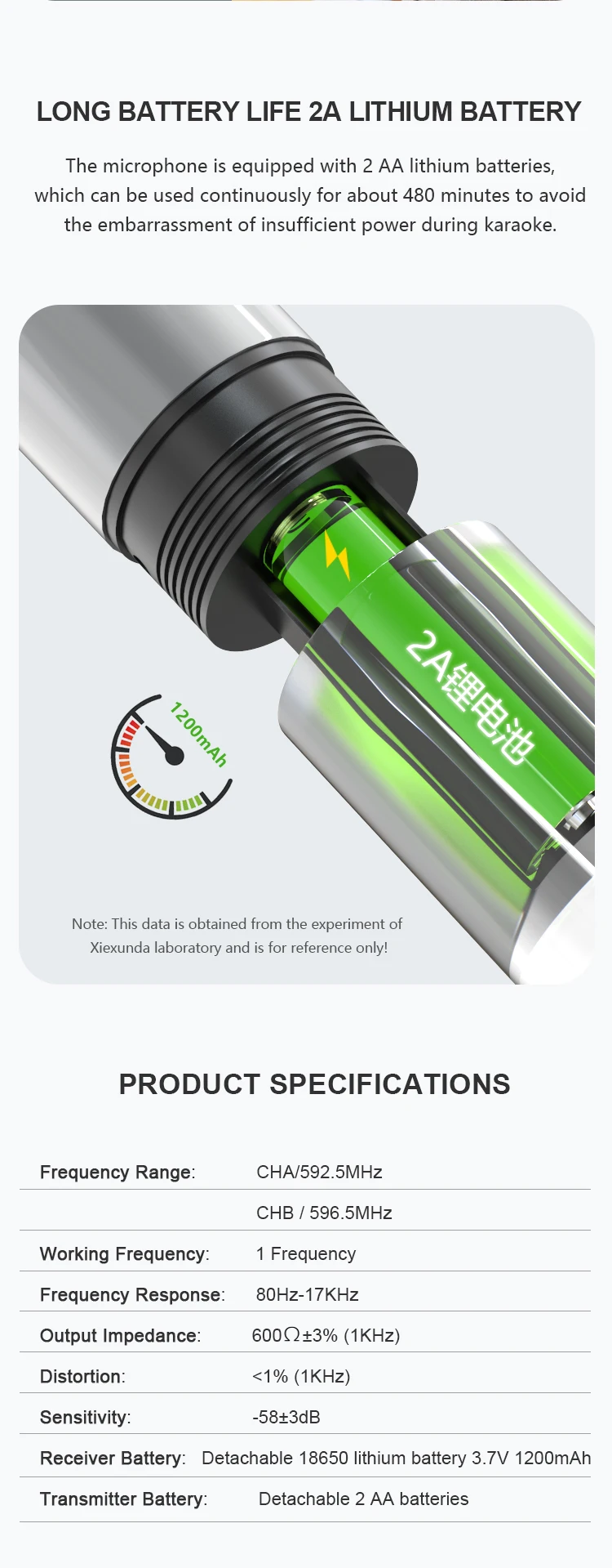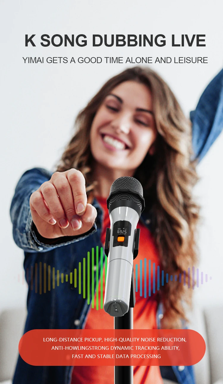 1.Micrófono inalámbrico universal VHF en la mano, discurso de karaoke, plug and play, rango de frecuencia más amplio, menos interferencias, muestra fácilmente tu voz perfecta.