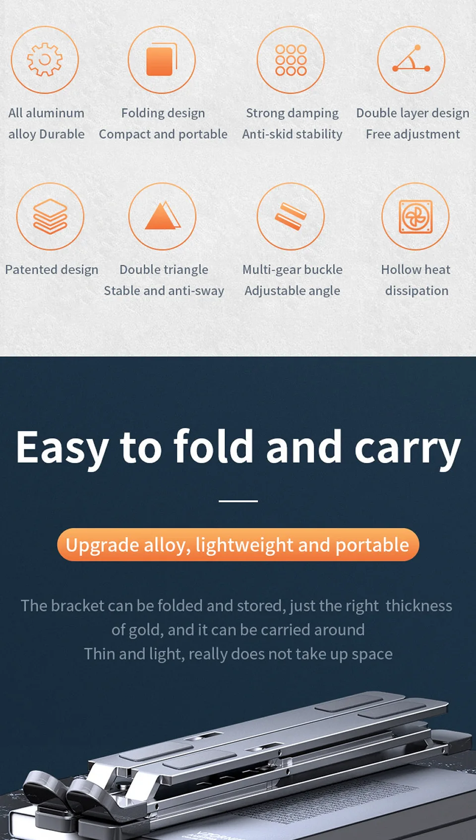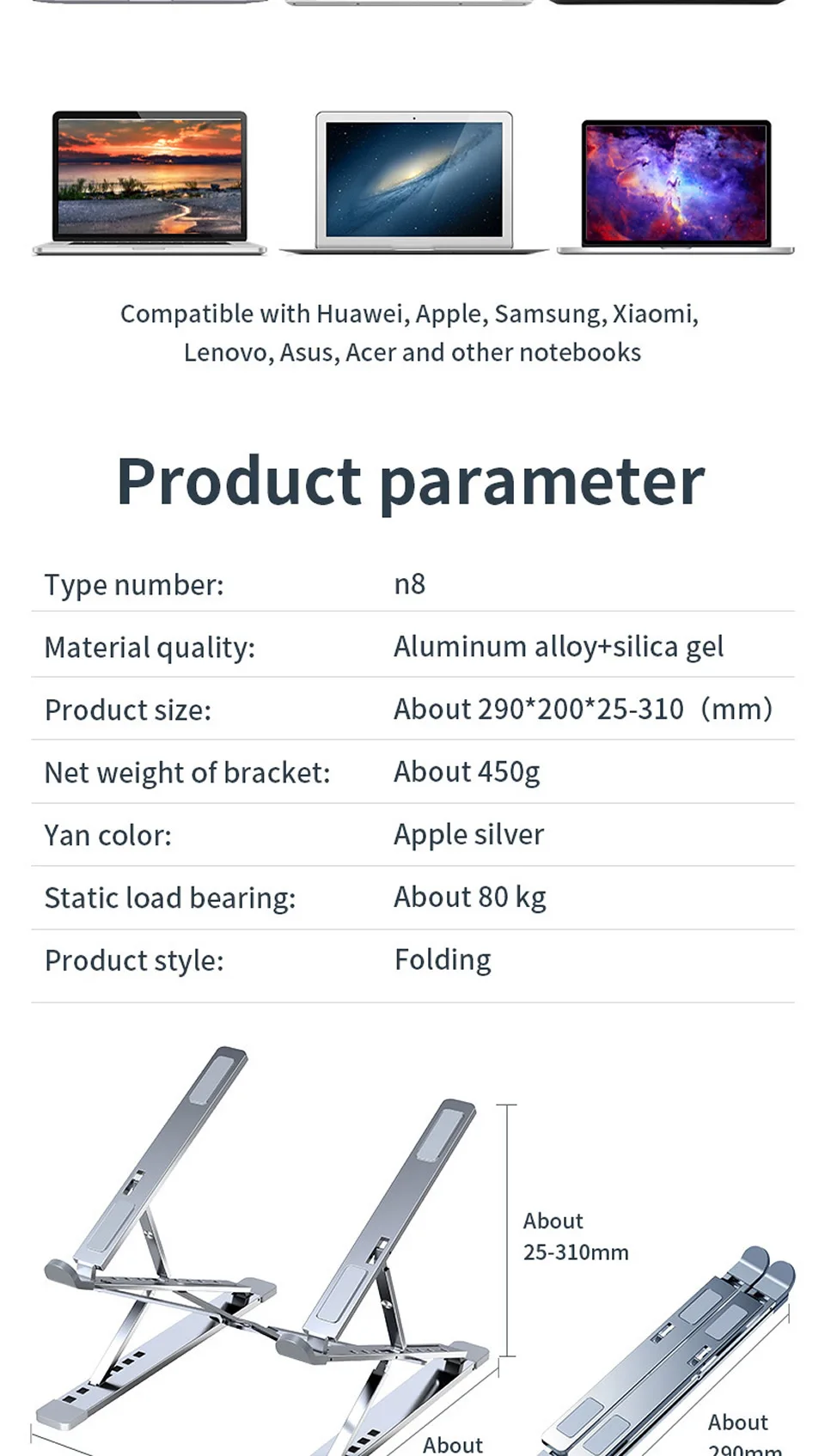 Comprar KKXA-soporte ajustable N8 para ordenador portátil, almohadilla de refrigeración plegable de aluminio para Macbook Air Pro, PC, tableta y Notebook