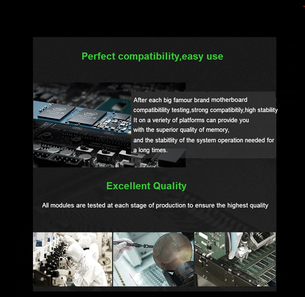 Cada memoria KLLISRE a través de los diversos tipos de pruebas manuales, hacen que el producto se puede utilizar en diferentes entornos de aplicación, ser capaz de proporcionar a los usuarios tanto de alto rendimiento y alta estabilidad de la experiencia informática.