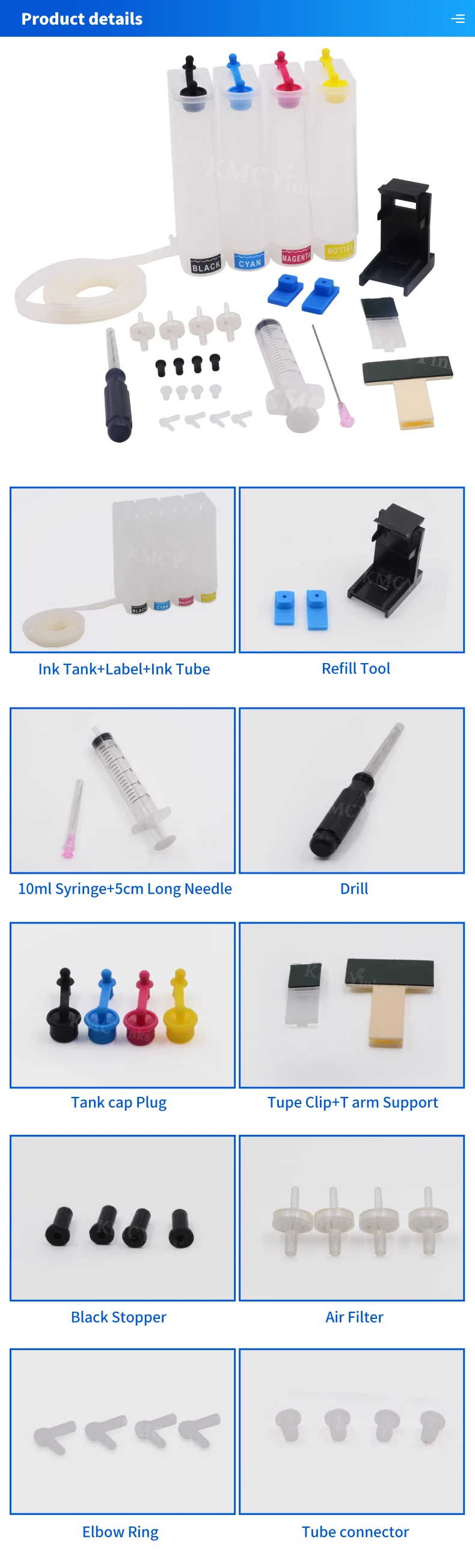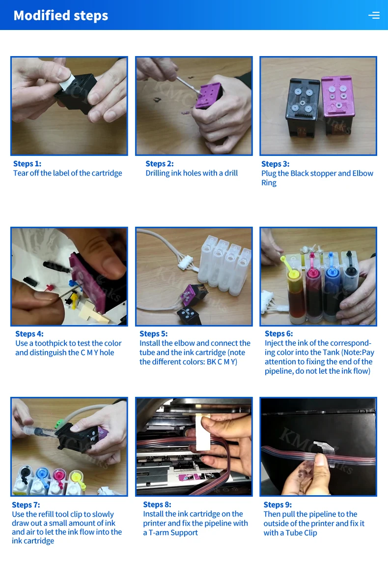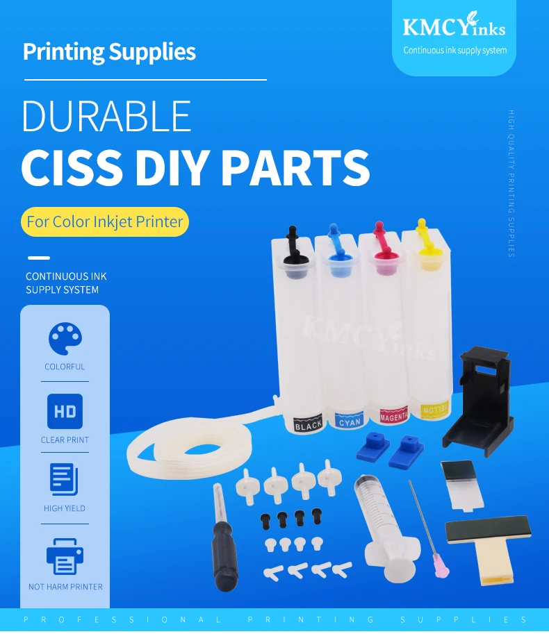 KMCYinks DIY 4 colores recargables CISS ajuste con accesorios completos para HP 21 22 121 122 123 300 301 302 304 650 652 cartucho de tinta